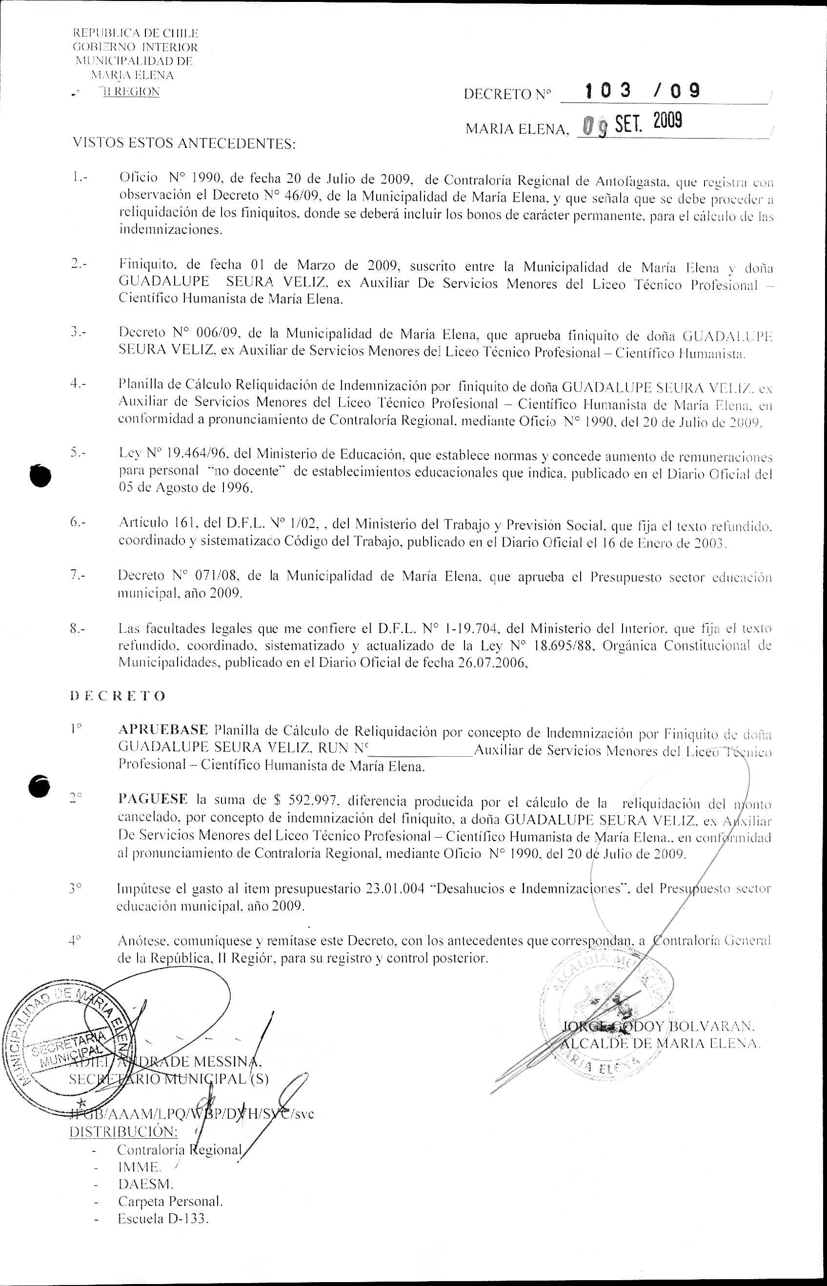 DECRETO REGISTRADOS AÑO 2009