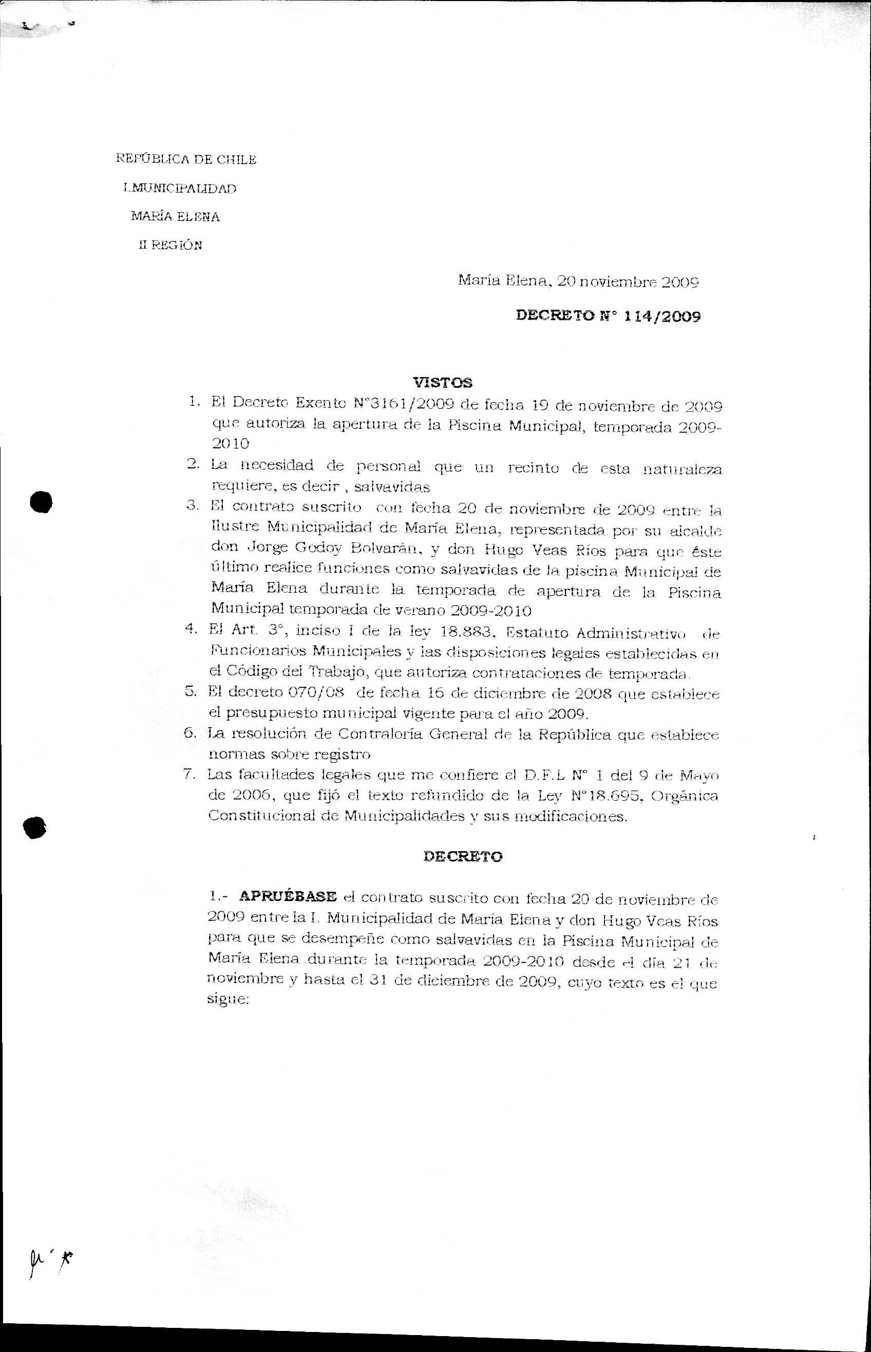Transparencia Activa » 1.7 Actas y Resoluciones con efectos sobre Terceros» Decretos» 2009» Decretos Alcaldicios» DECRETO REGISTRADOS AÑO 2009» 2013-07-04 DR 114-2009