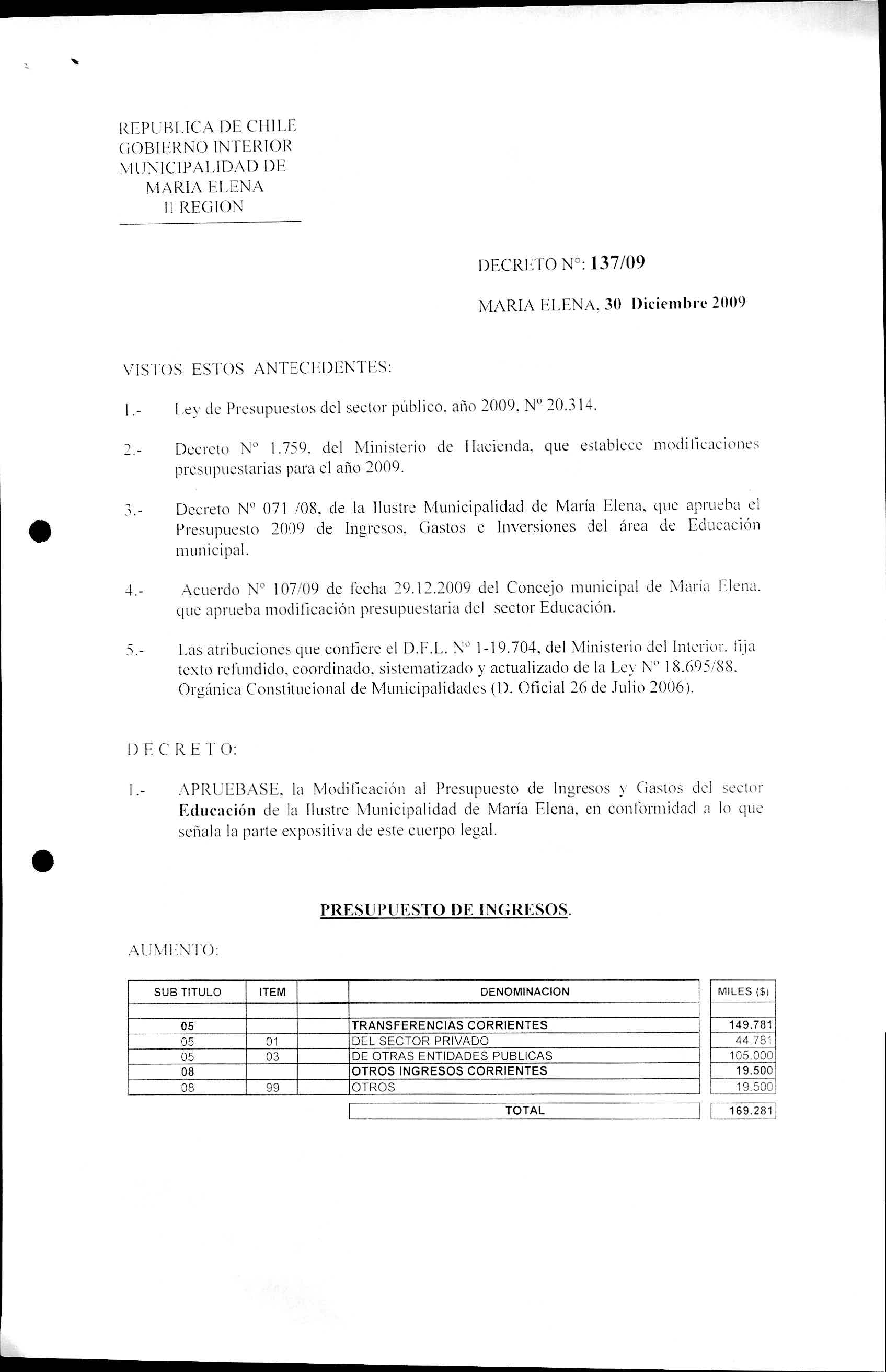 DECRETO REGISTRADOS AÑO 2009