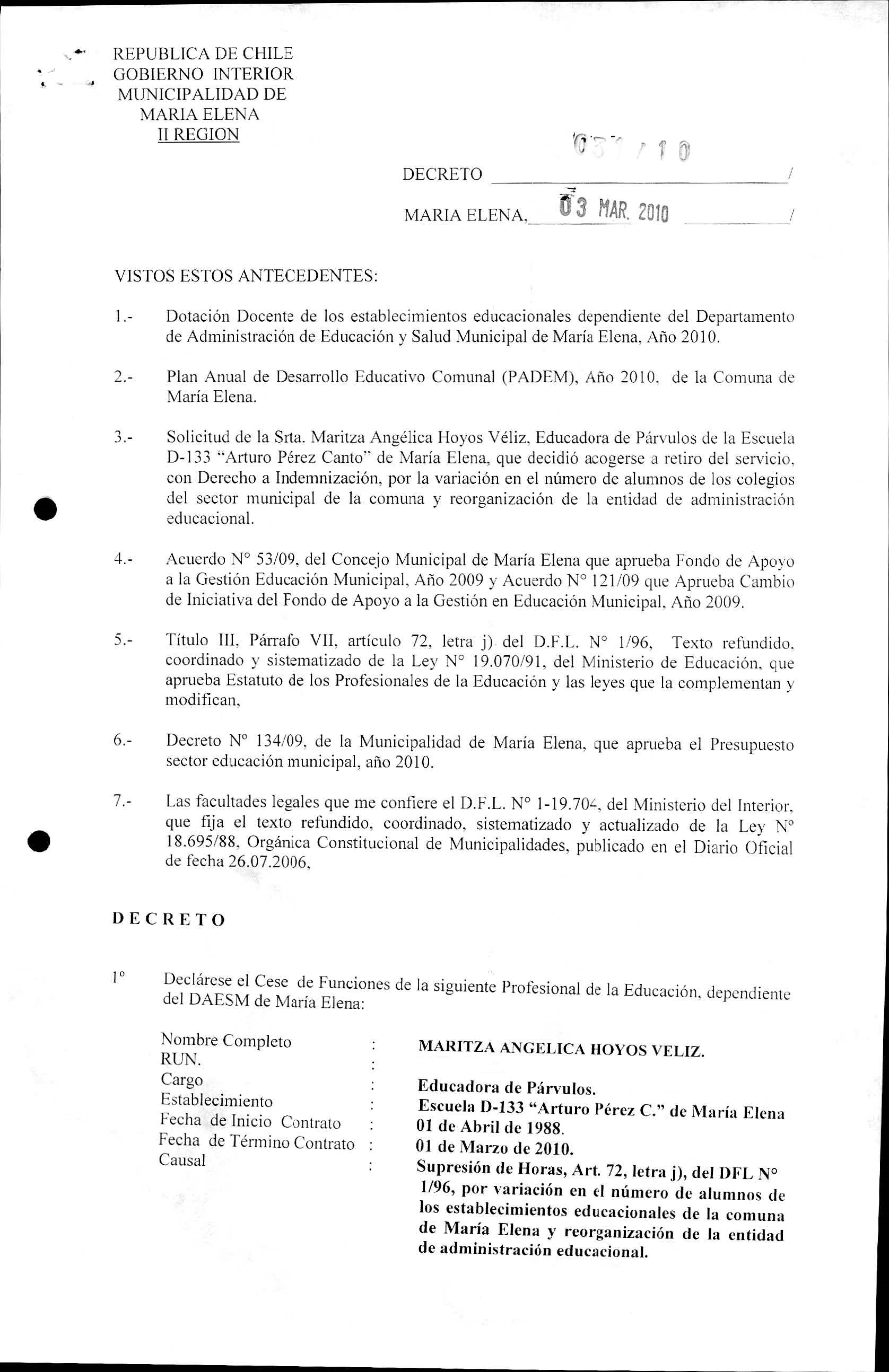 Transparencia Activa » 1.7 Actas y Resoluciones con efectos sobre Terceros» Decretos» 2010» Decretos Alcaldicios» DECRETOS REGISTRADO AÑO 2010» 2013-07-02 DR 31-2010