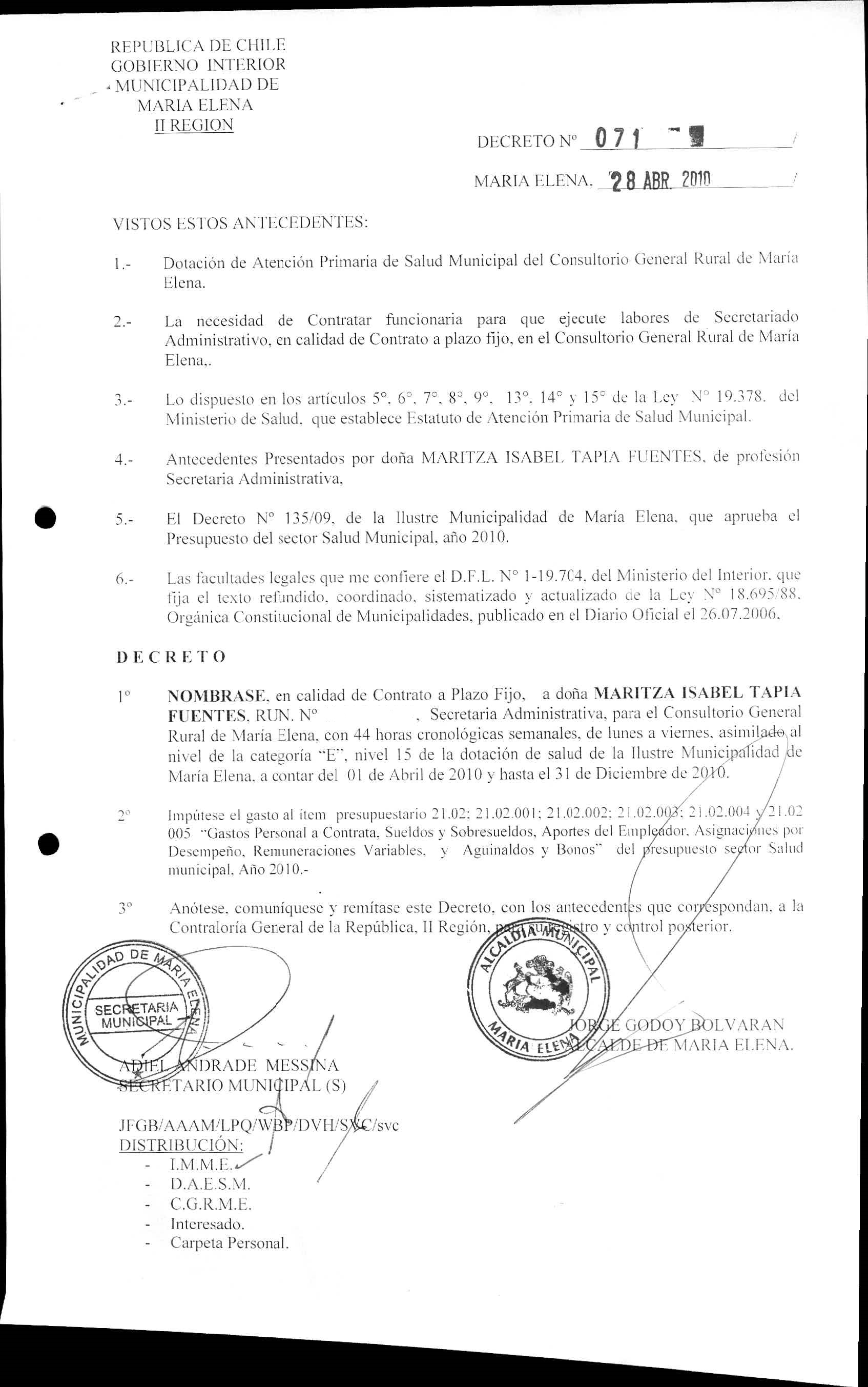 DECRETOS REGISTRADO AÑO 2010