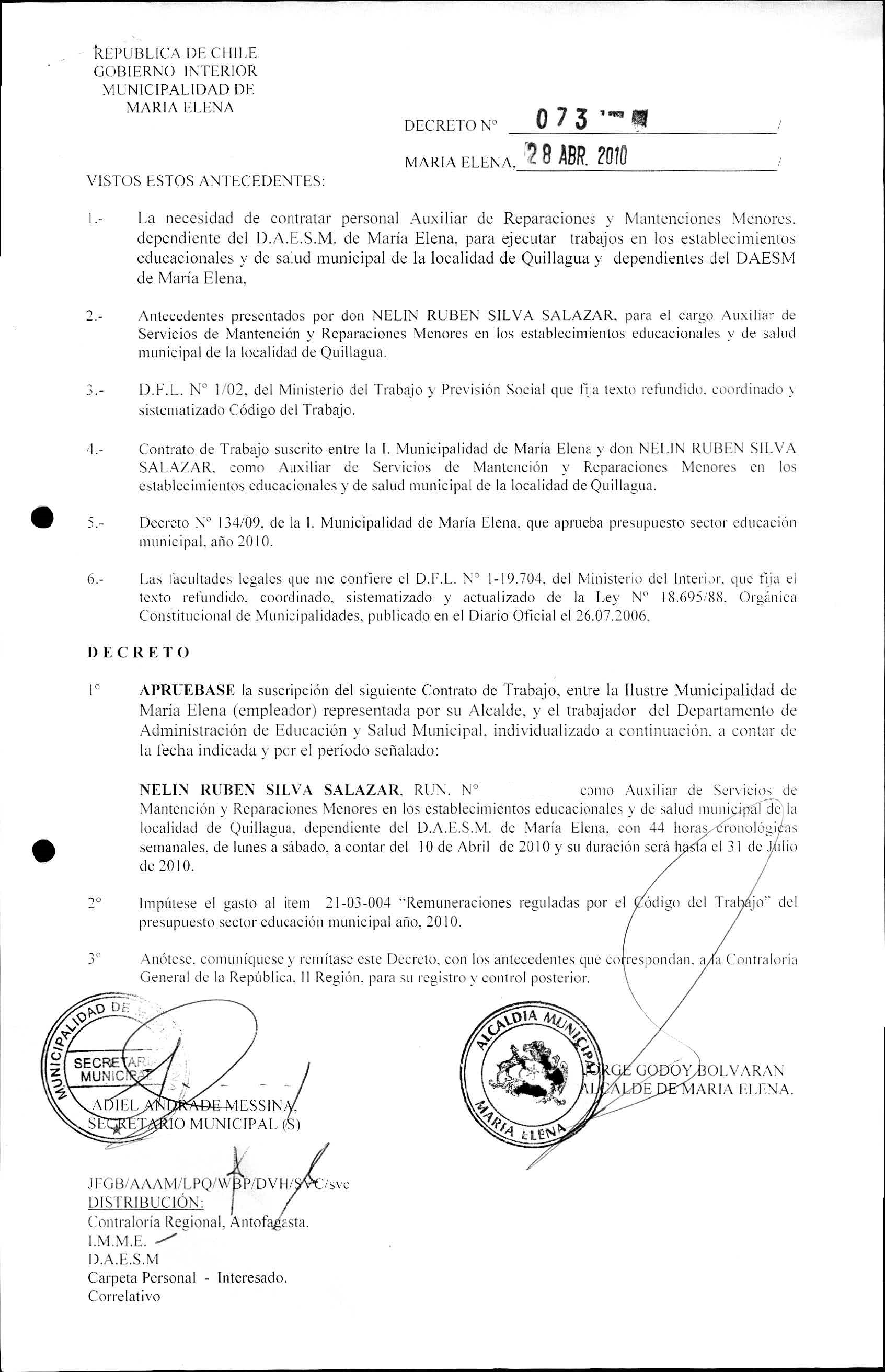 DECRETOS REGISTRADO AÑO 2010