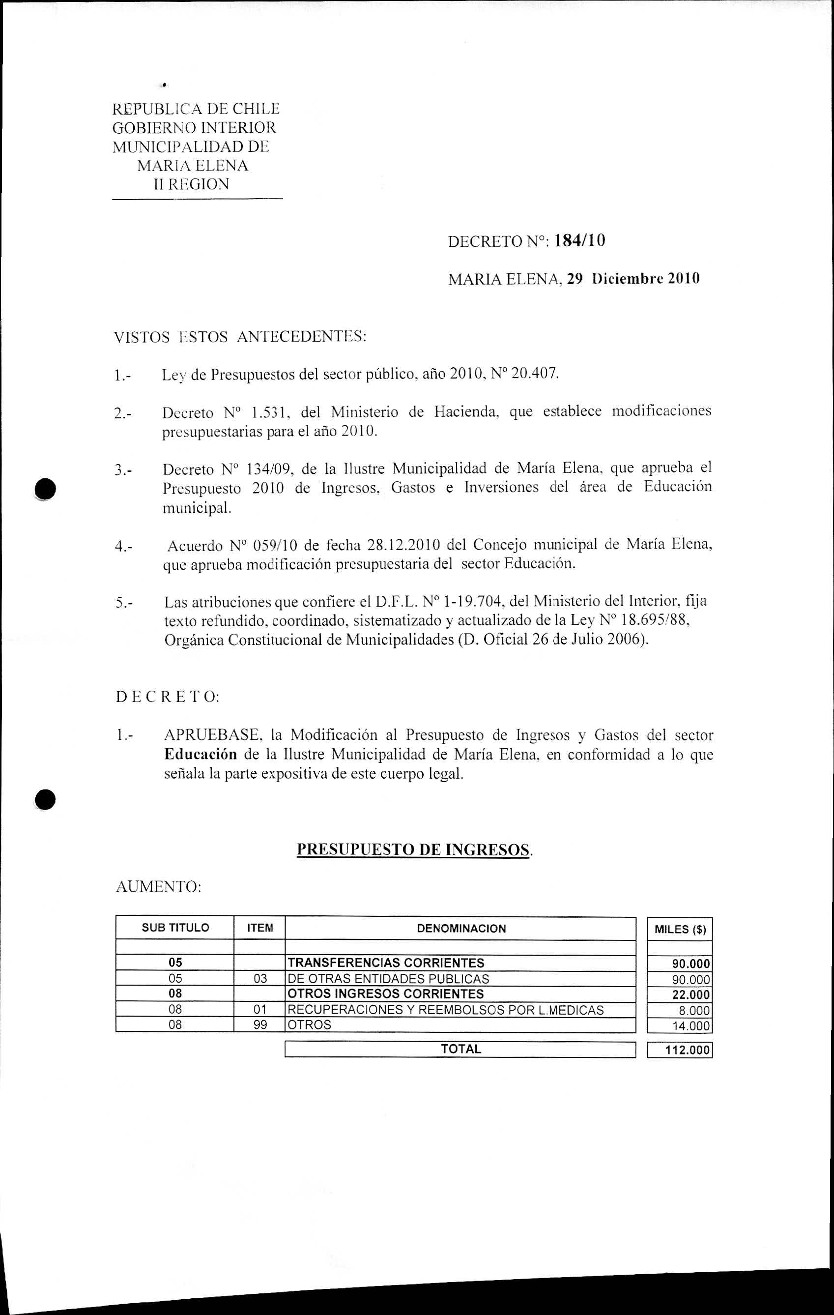 DECRETOS REGISTRADO AÑO 2010