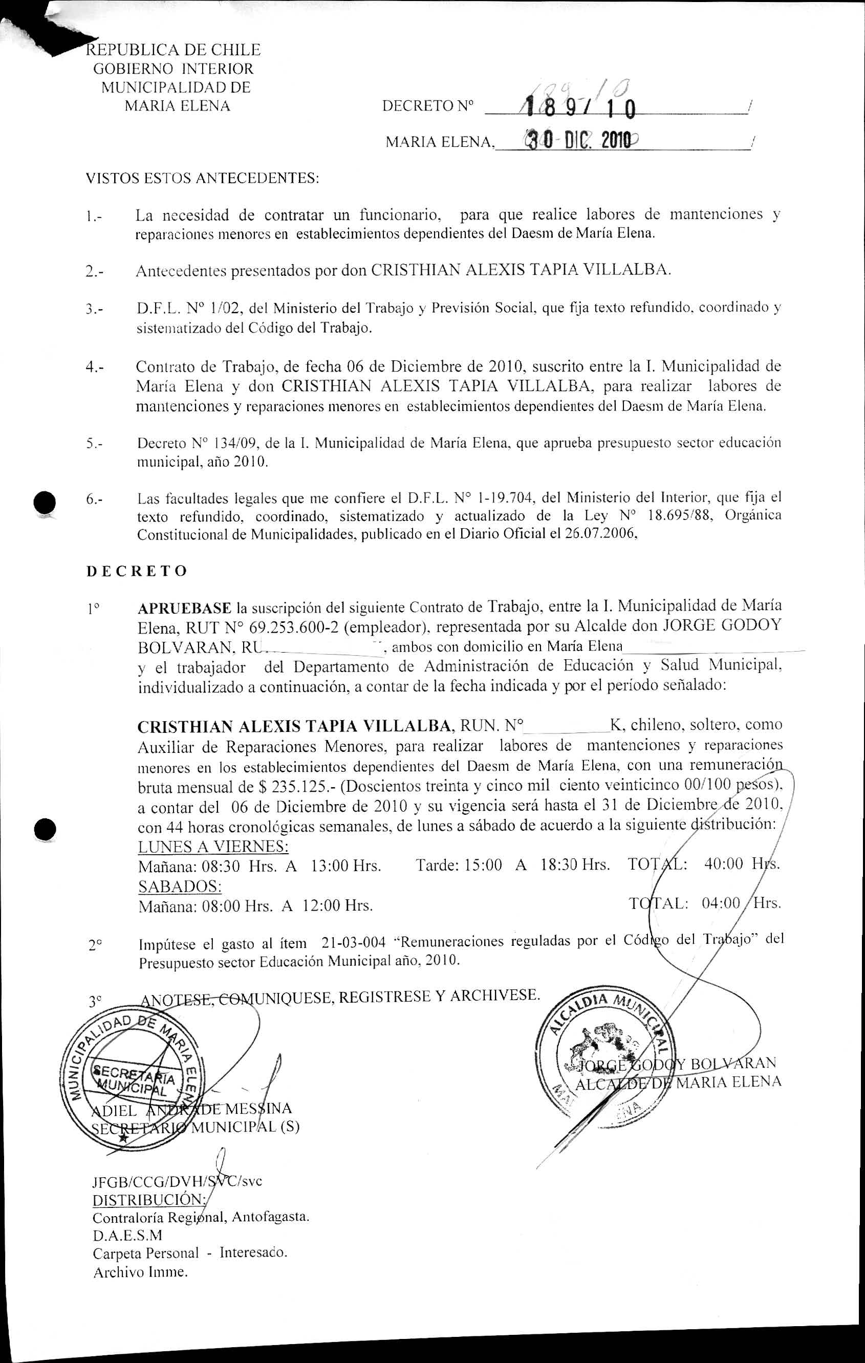 Transparencia Activa » 1.7 Actas y Resoluciones con efectos sobre Terceros» Decretos» 2010» Decretos Alcaldicios» DECRETOS REGISTRADO AÑO 2010» 2013-07-02 DR 189-2010