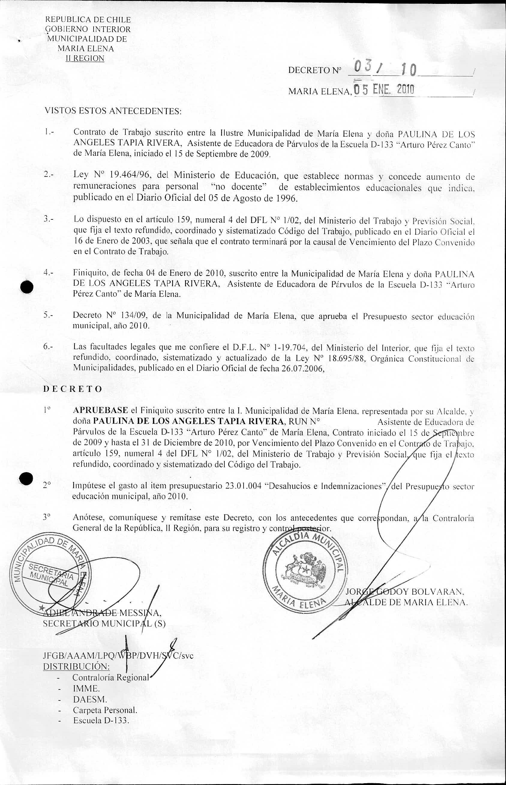 DECRETOS REGISTRADO AÑO 2010