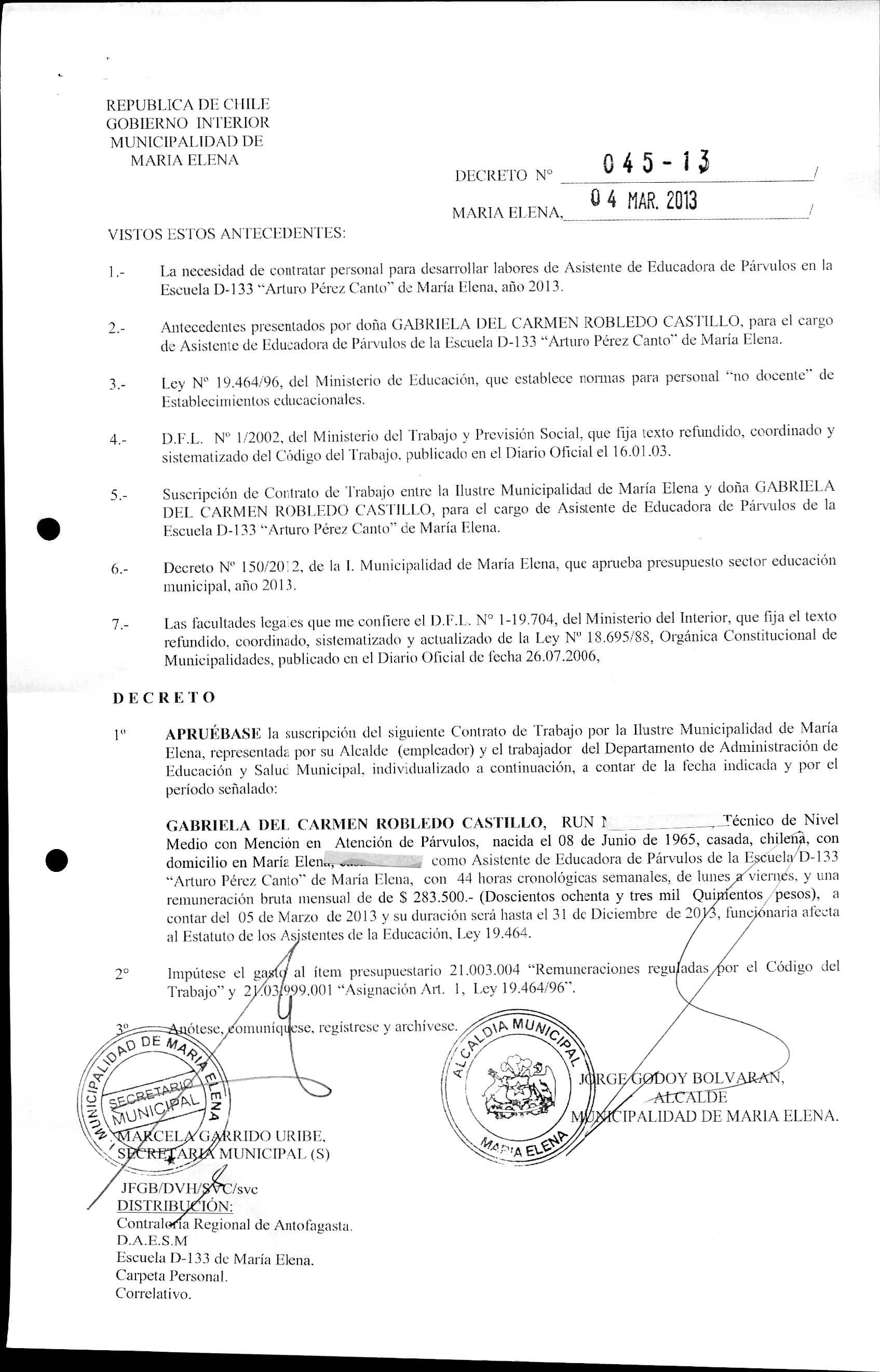 Transparencia Activa » 1.7 Actas y Resoluciones con efectos sobre Terceros» Decretos» 2013» Decretos Alcaldicios» DECRETOS REGISTROS AÑO 2013» 2013-07-04 DR 45-2013