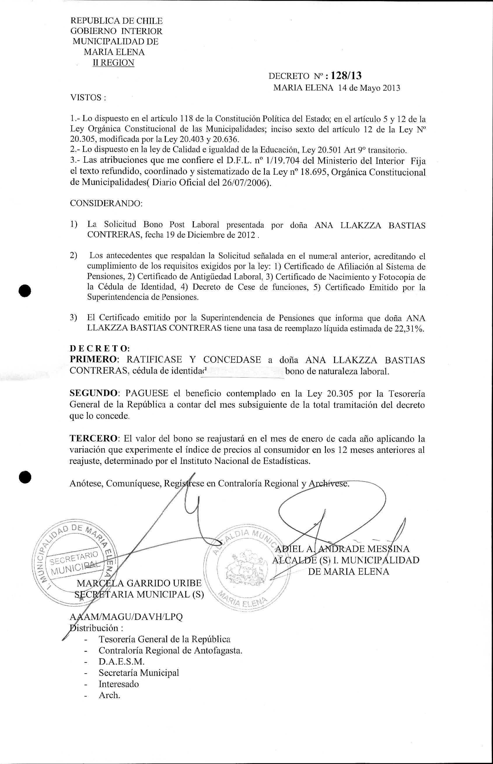 Transparencia Activa » 1.7 Actas y Resoluciones con efectos sobre Terceros» Decretos» 2013» Decretos Alcaldicios» DECRETOS REGISTROS AÑO 2013» 2013-07-04 DR 128-2013