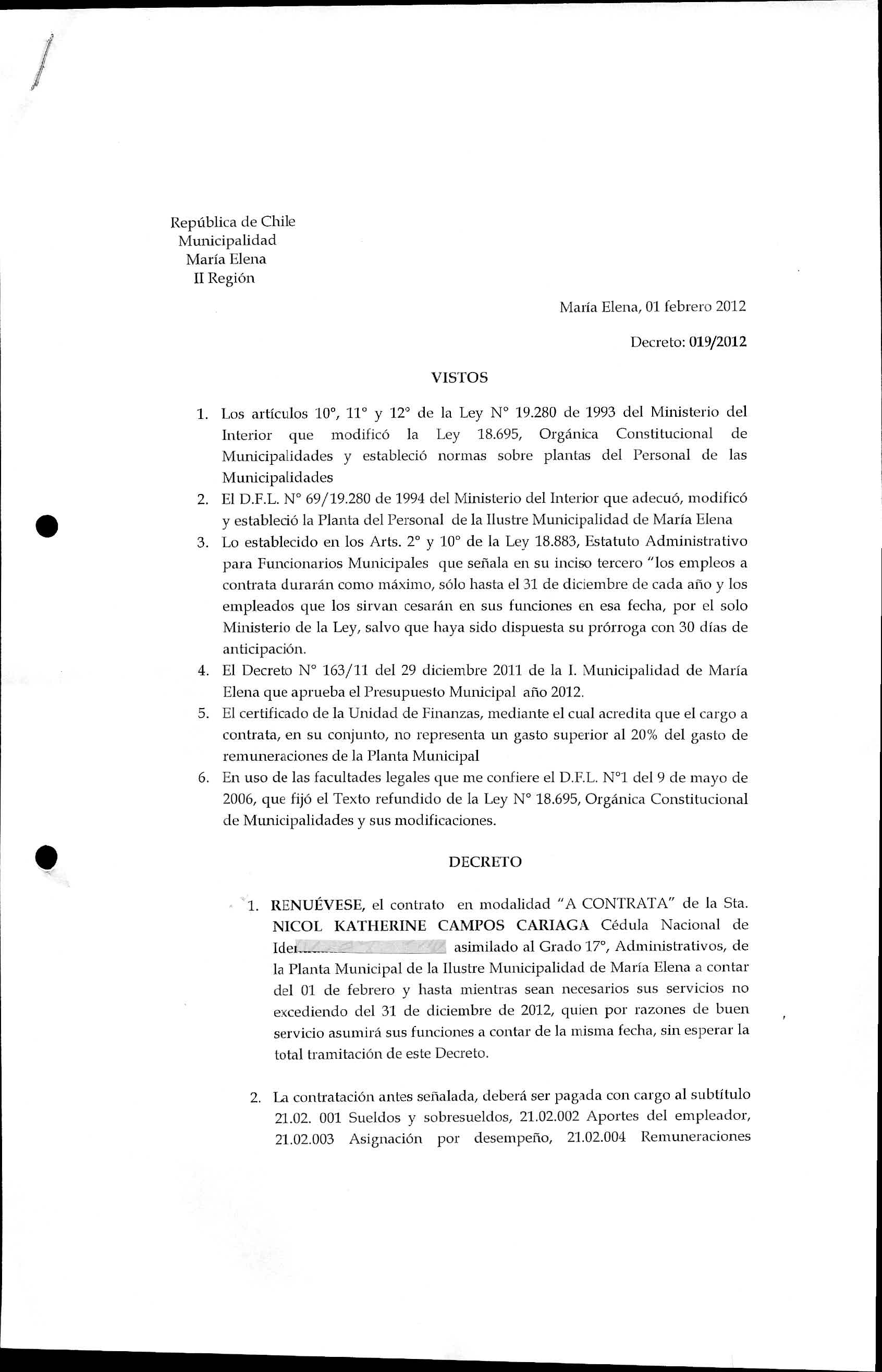 DECRETOS REGISTRADOS AÑO 2012