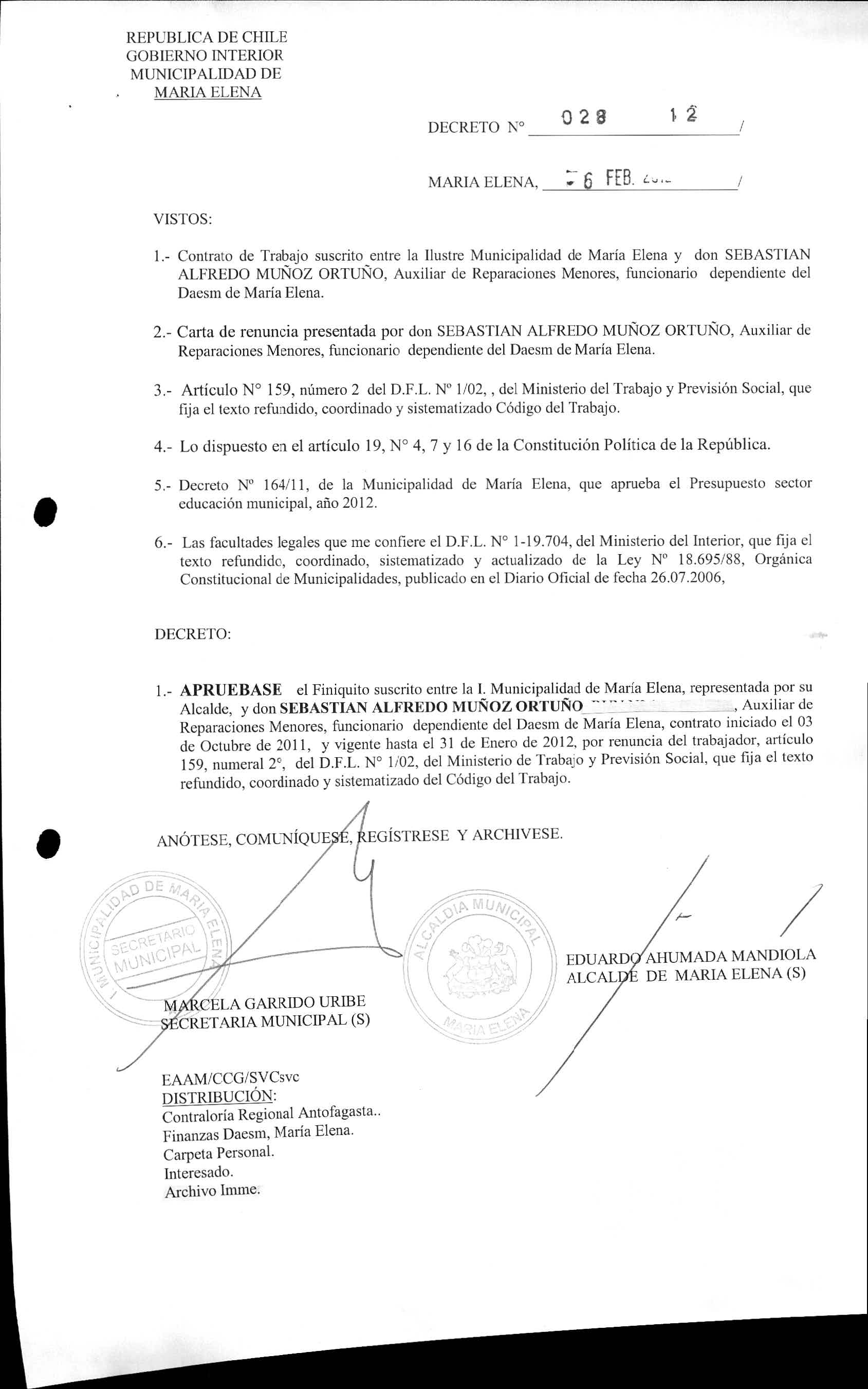 DECRETOS REGISTRADOS AÑO 2012