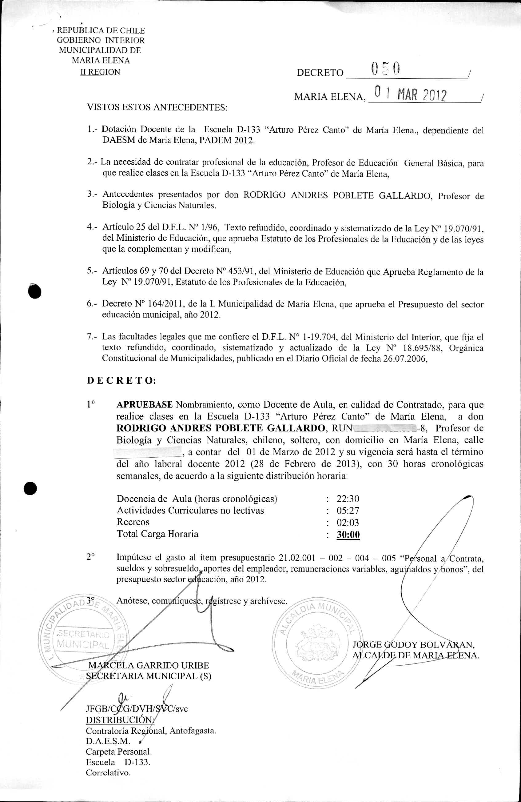 DECRETOS REGISTRADOS AÑO 2012