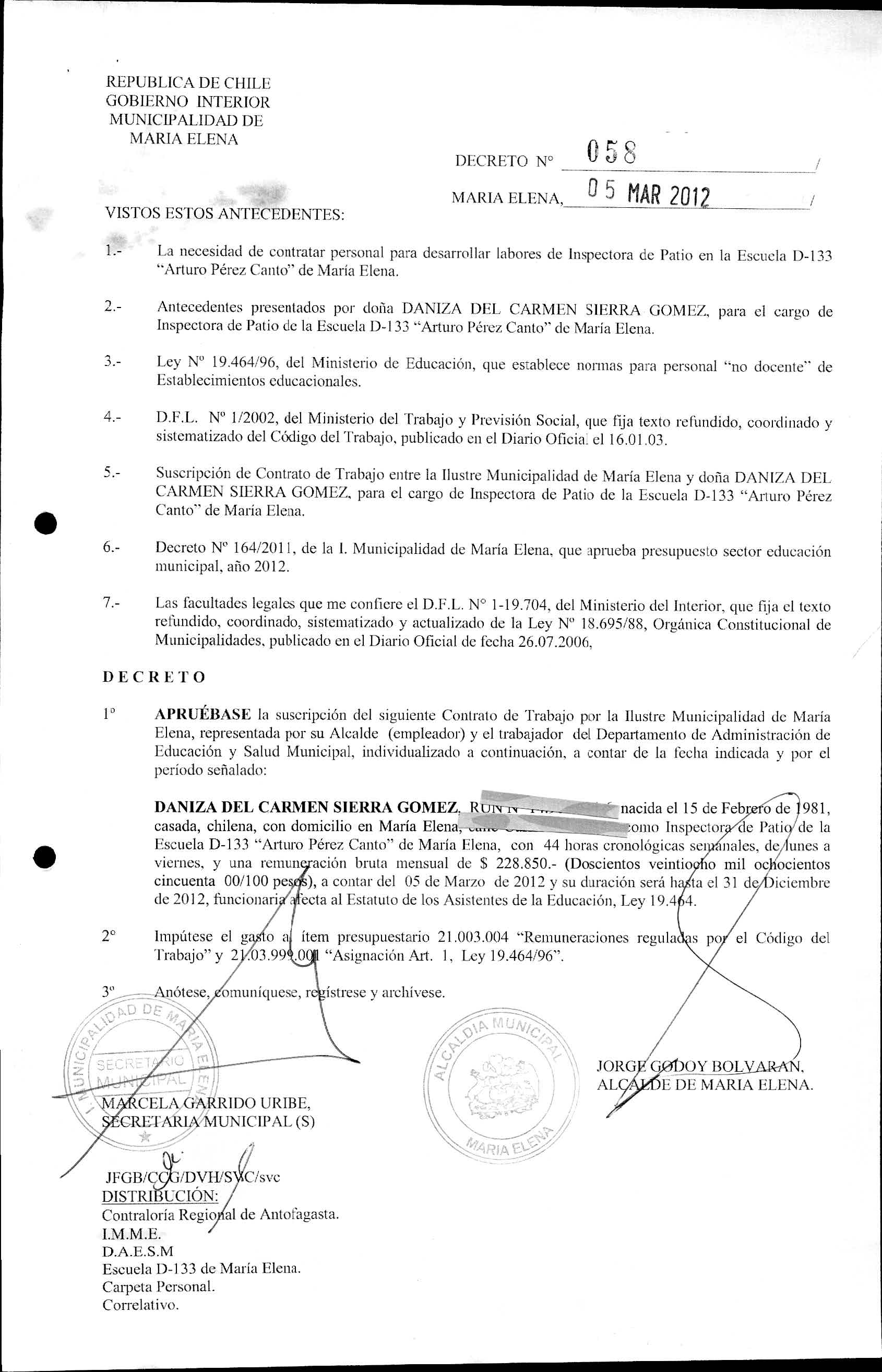 DECRETOS REGISTRADOS AÑO 2012