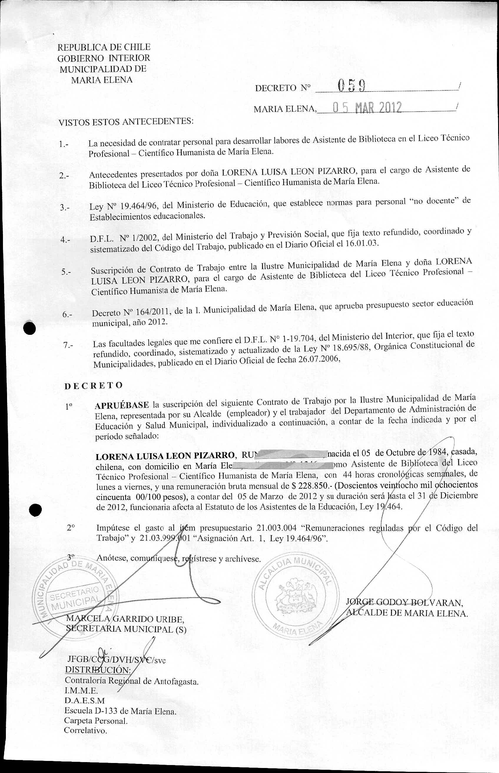 DECRETOS REGISTRADOS AÑO 2012