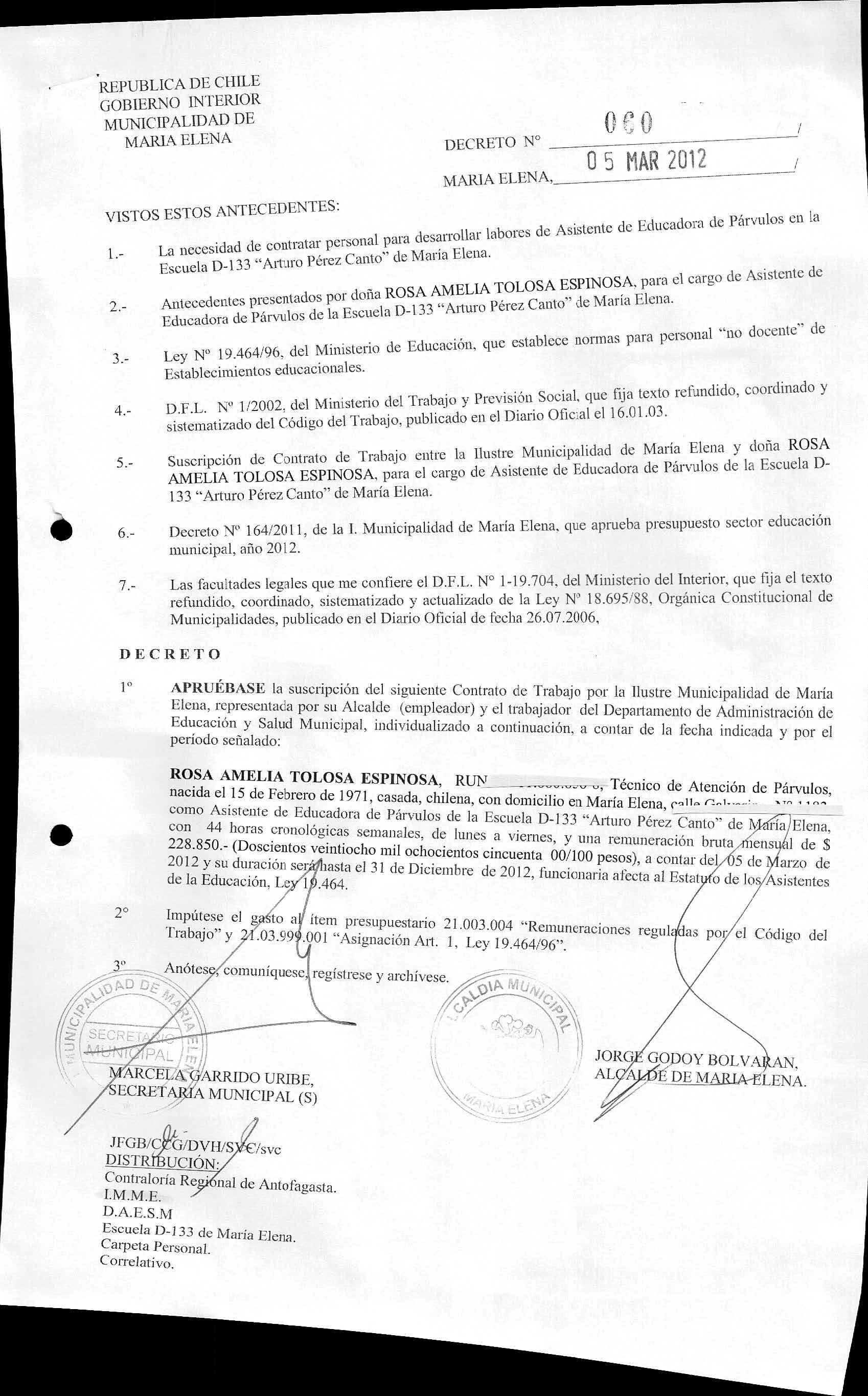 DECRETOS REGISTRADOS AÑO 2012