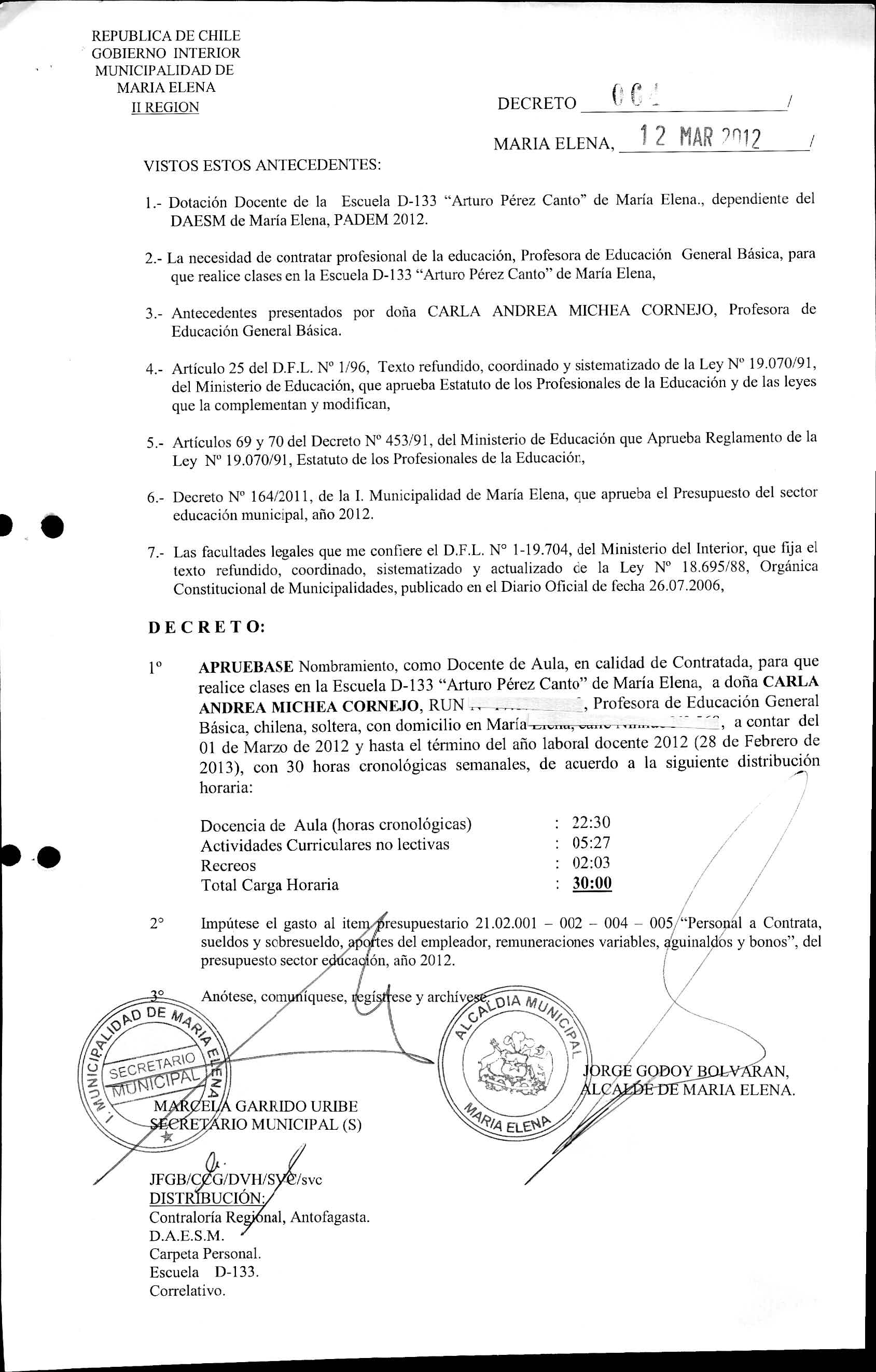 DECRETOS REGISTRADOS AÑO 2012