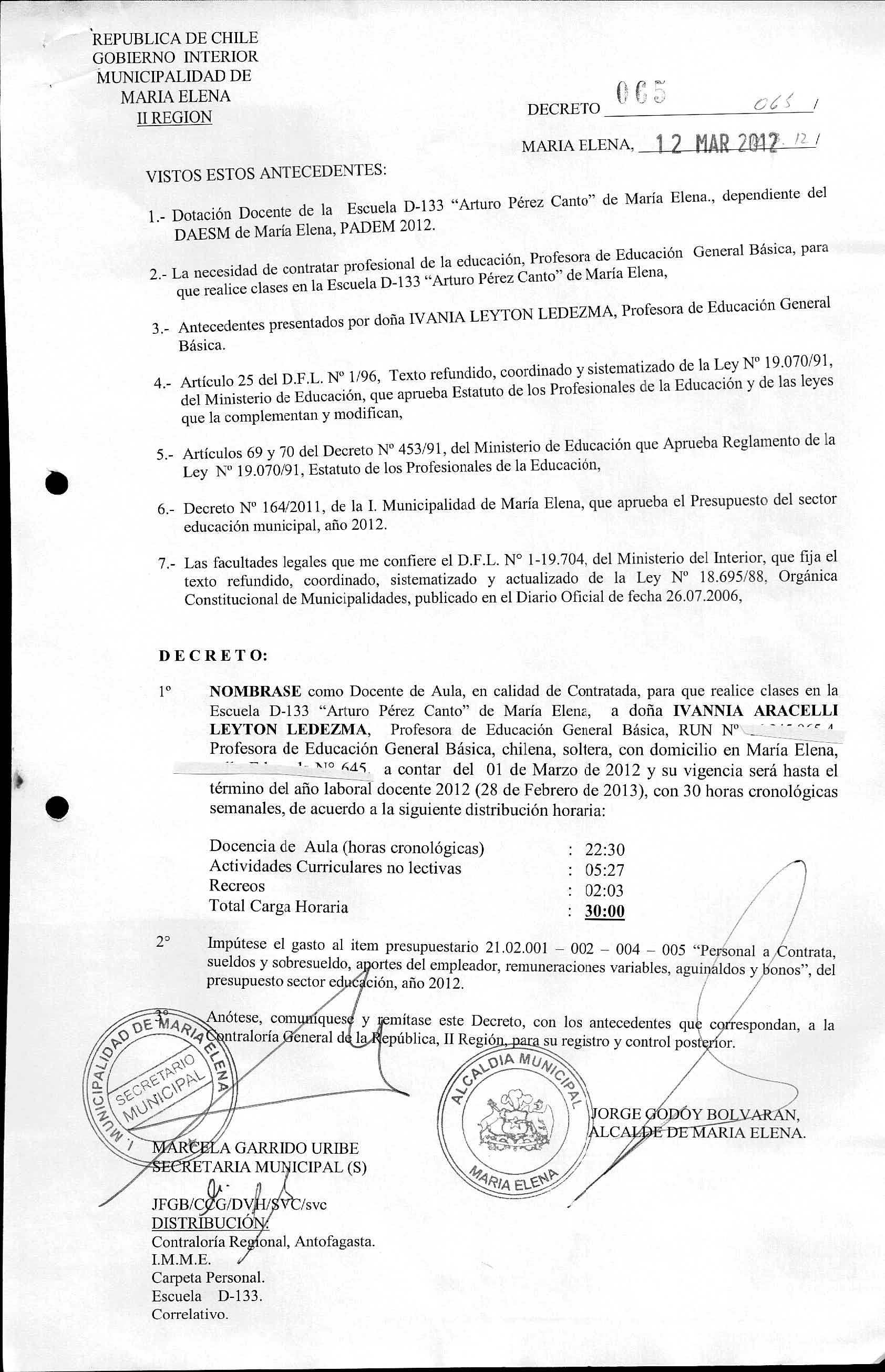 DECRETOS REGISTRADOS AÑO 2012