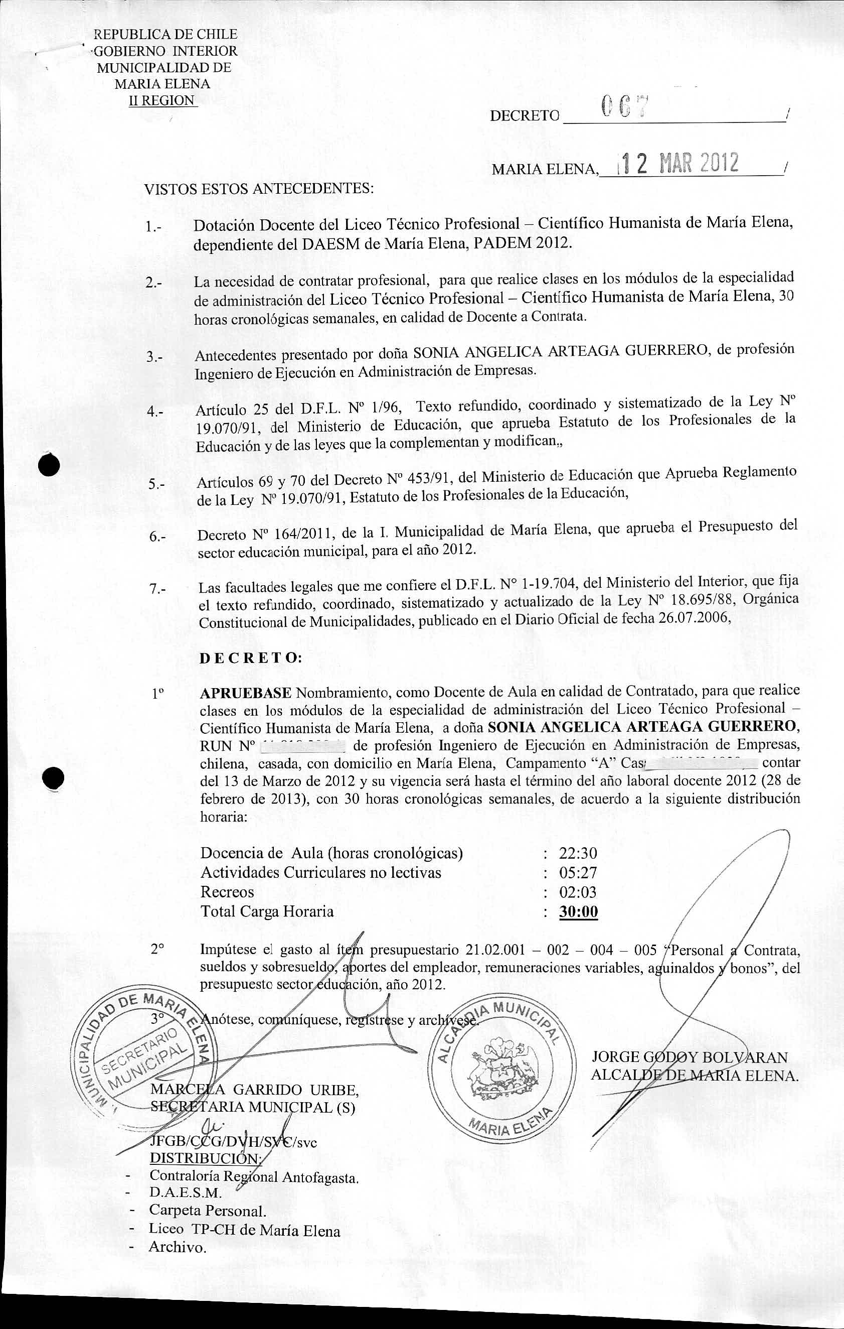 DECRETOS REGISTRADOS AÑO 2012