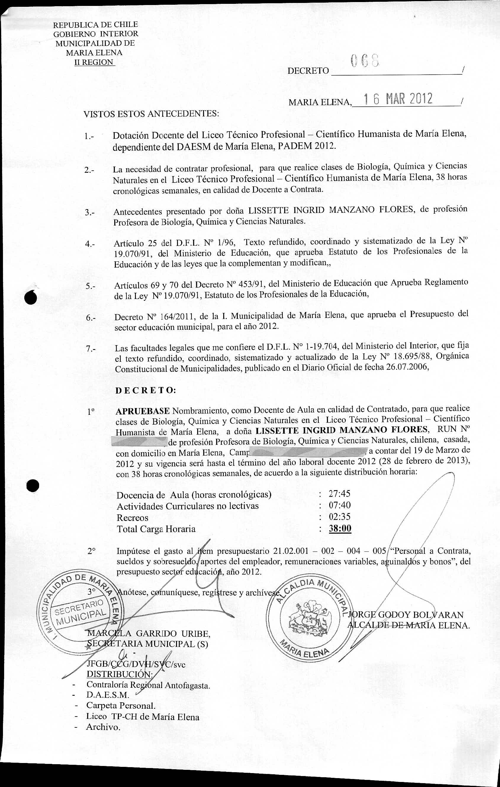 DECRETOS REGISTRADOS AÑO 2012