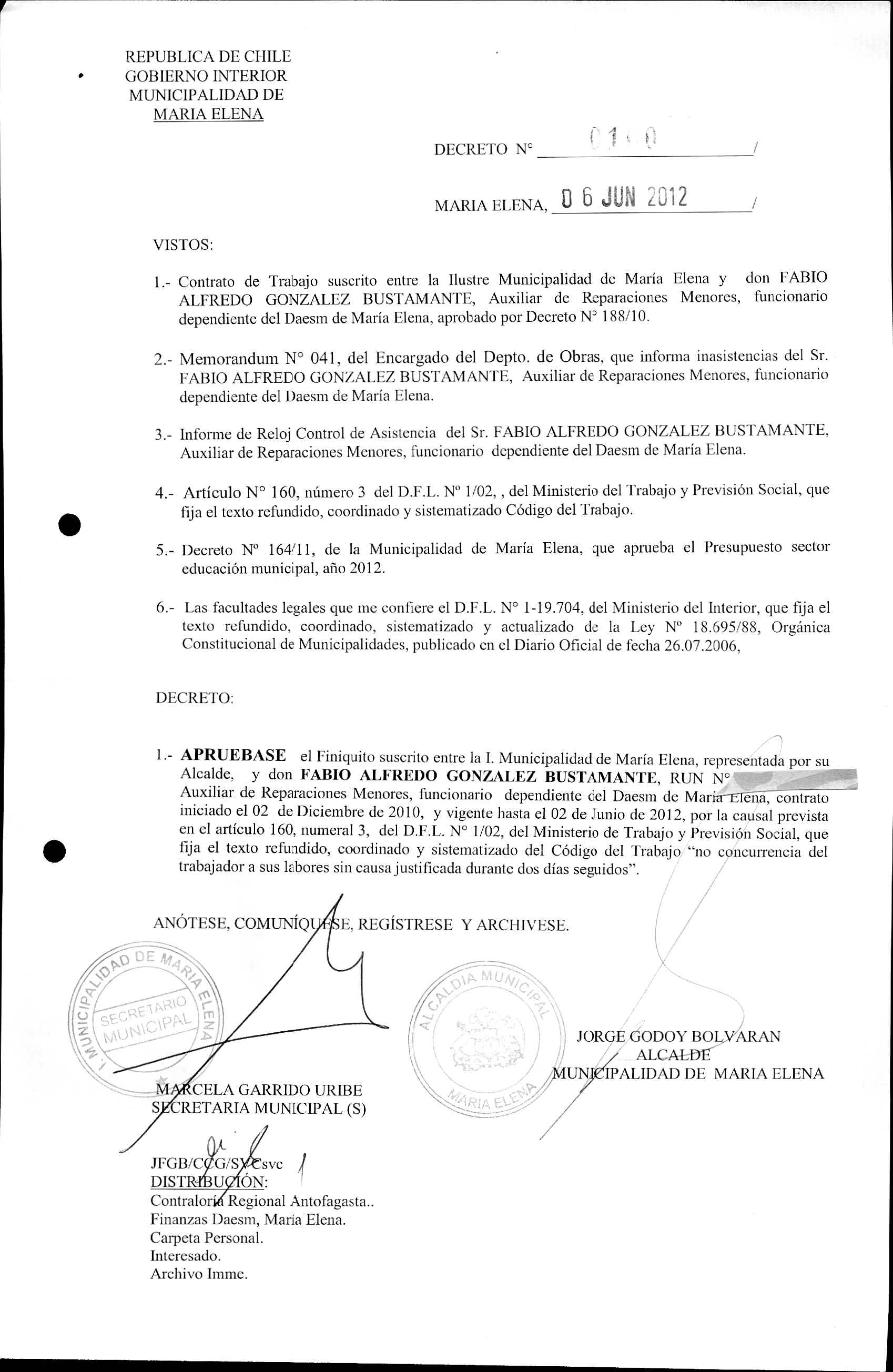 DECRETOS REGISTRADOS AÑO 2012