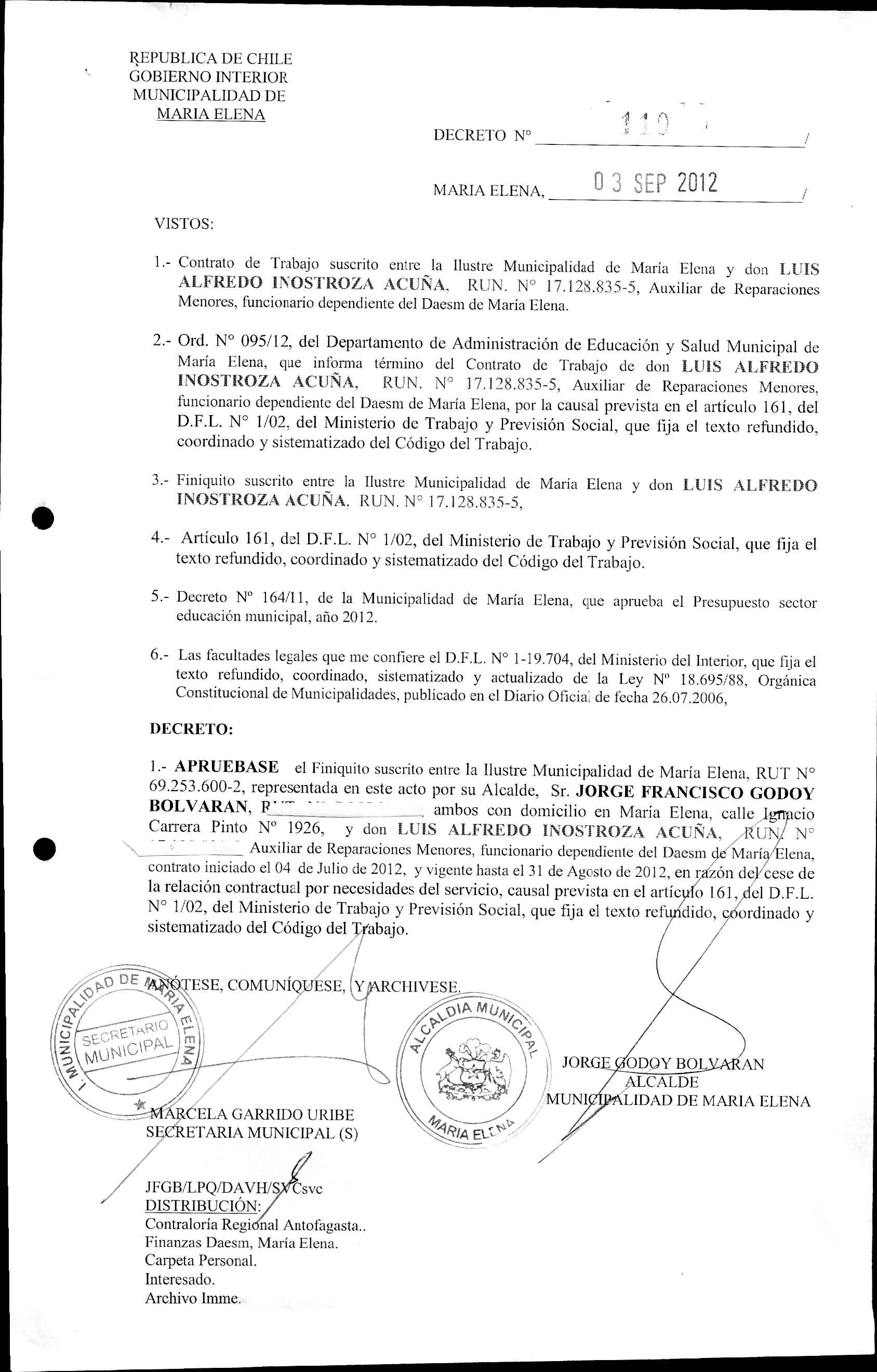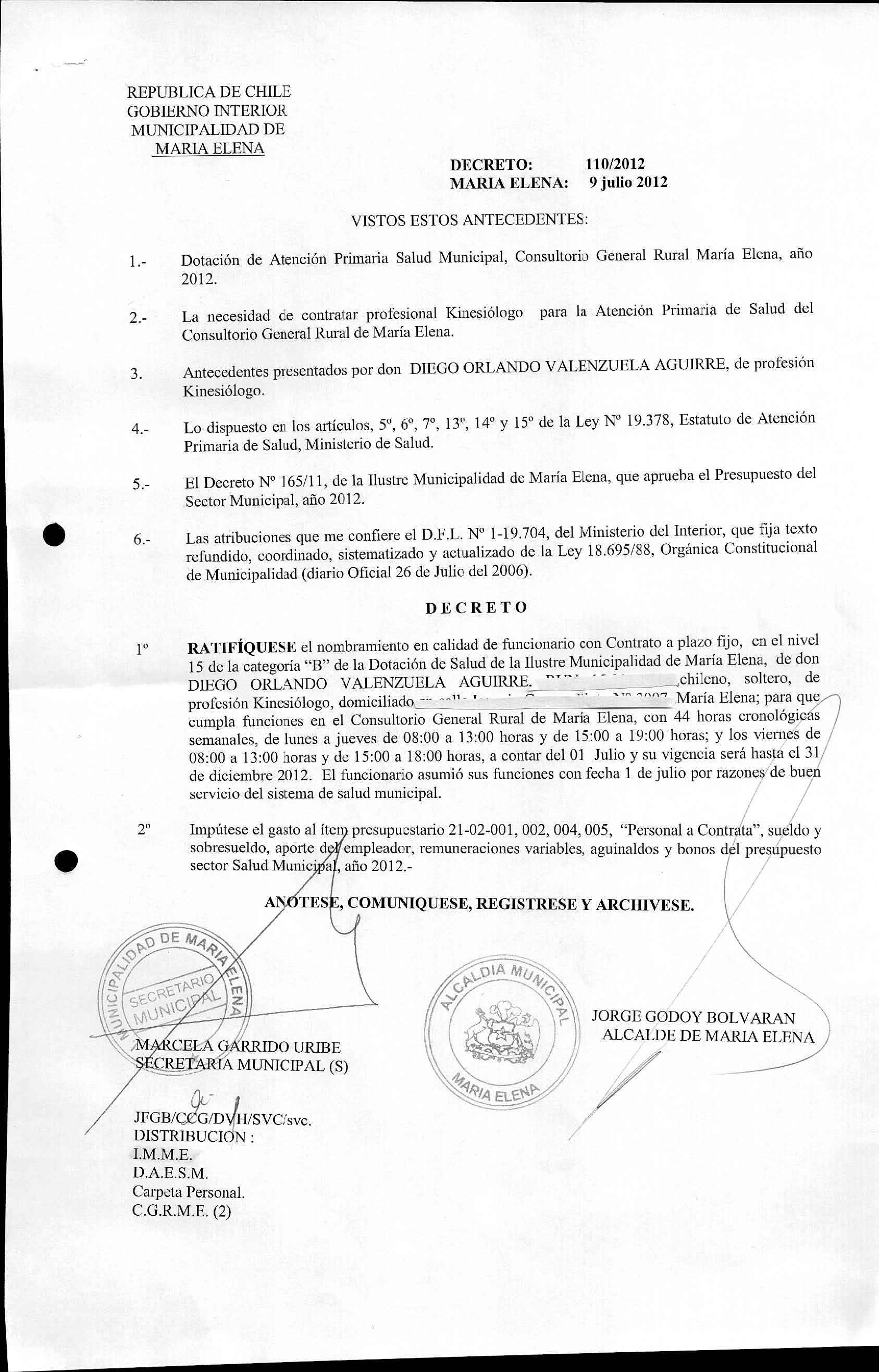 DECRETOS REGISTRADOS AÑO 2012