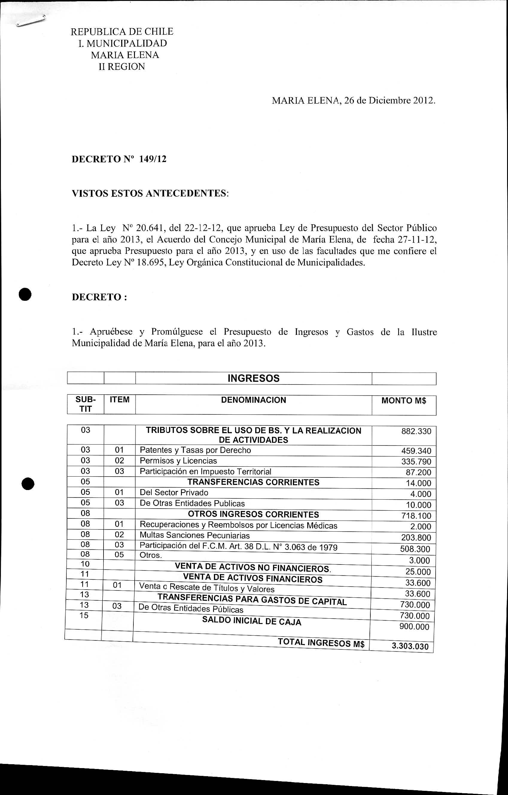 Transparencia Activa » 1.7 Actas y Resoluciones con efectos sobre Terceros» Decretos» 2012» Decretos Alcaldicios» DECRETOS REGISTRADOS AÑO 2012» 2013-07-03 DR 149-2012