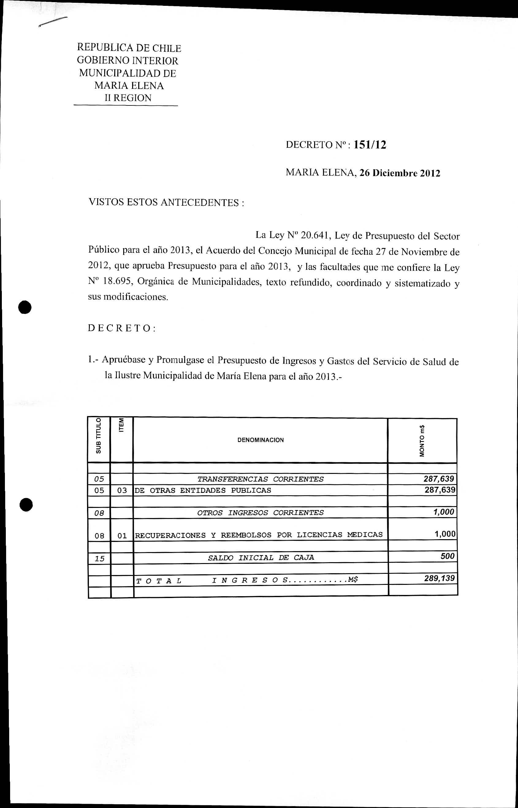 Transparencia Activa » 1.7 Actas y Resoluciones con efectos sobre Terceros» Decretos» 2012» Decretos Alcaldicios» DECRETOS REGISTRADOS AÑO 2012» 2013-07-03 DR 151-2012