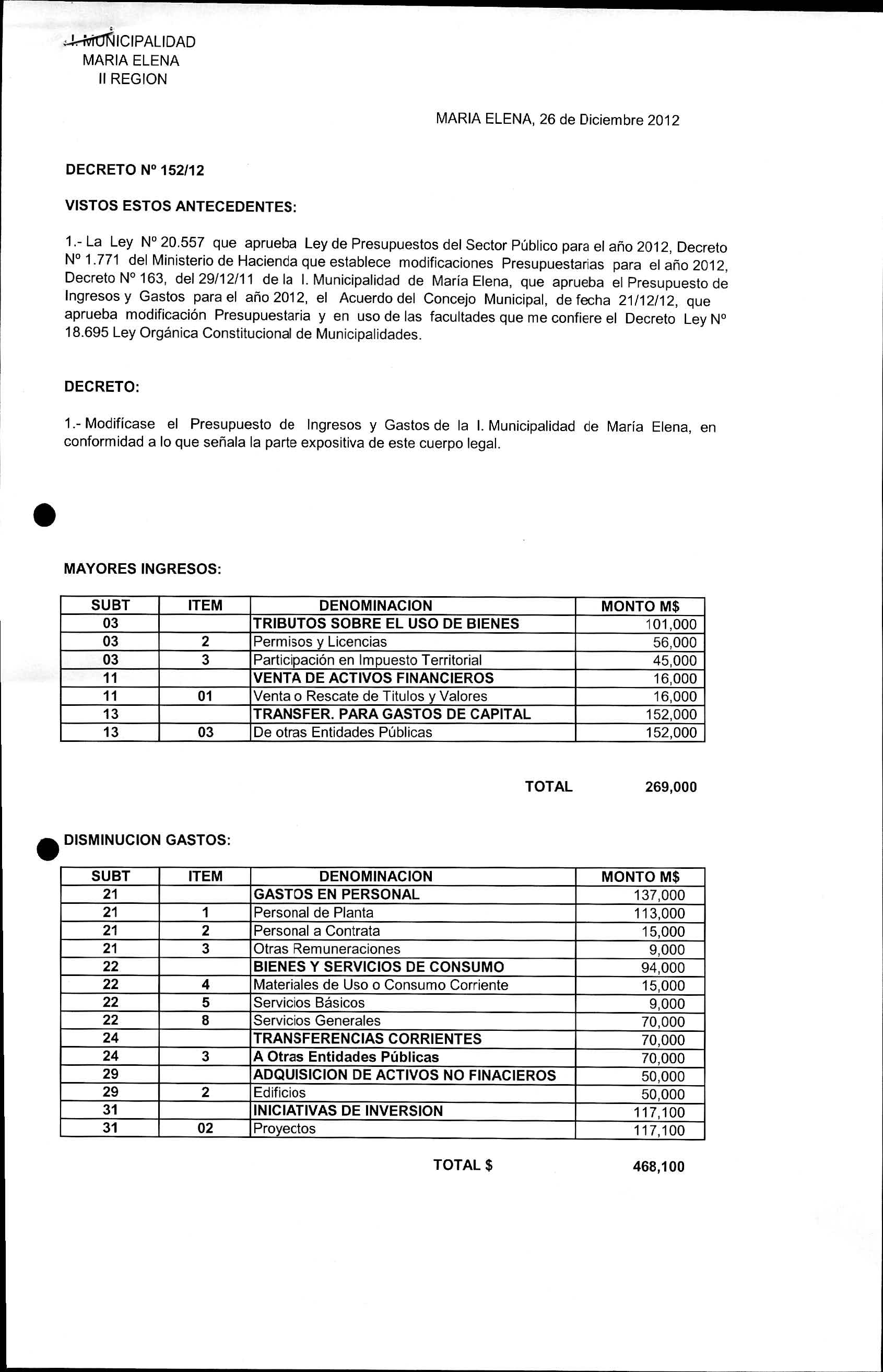 Transparencia Activa » 1.7 Actas y Resoluciones con efectos sobre Terceros» Decretos» 2012» Decretos Alcaldicios» DECRETOS REGISTRADOS AÑO 2012» 2013-07-03 DR 152-2012