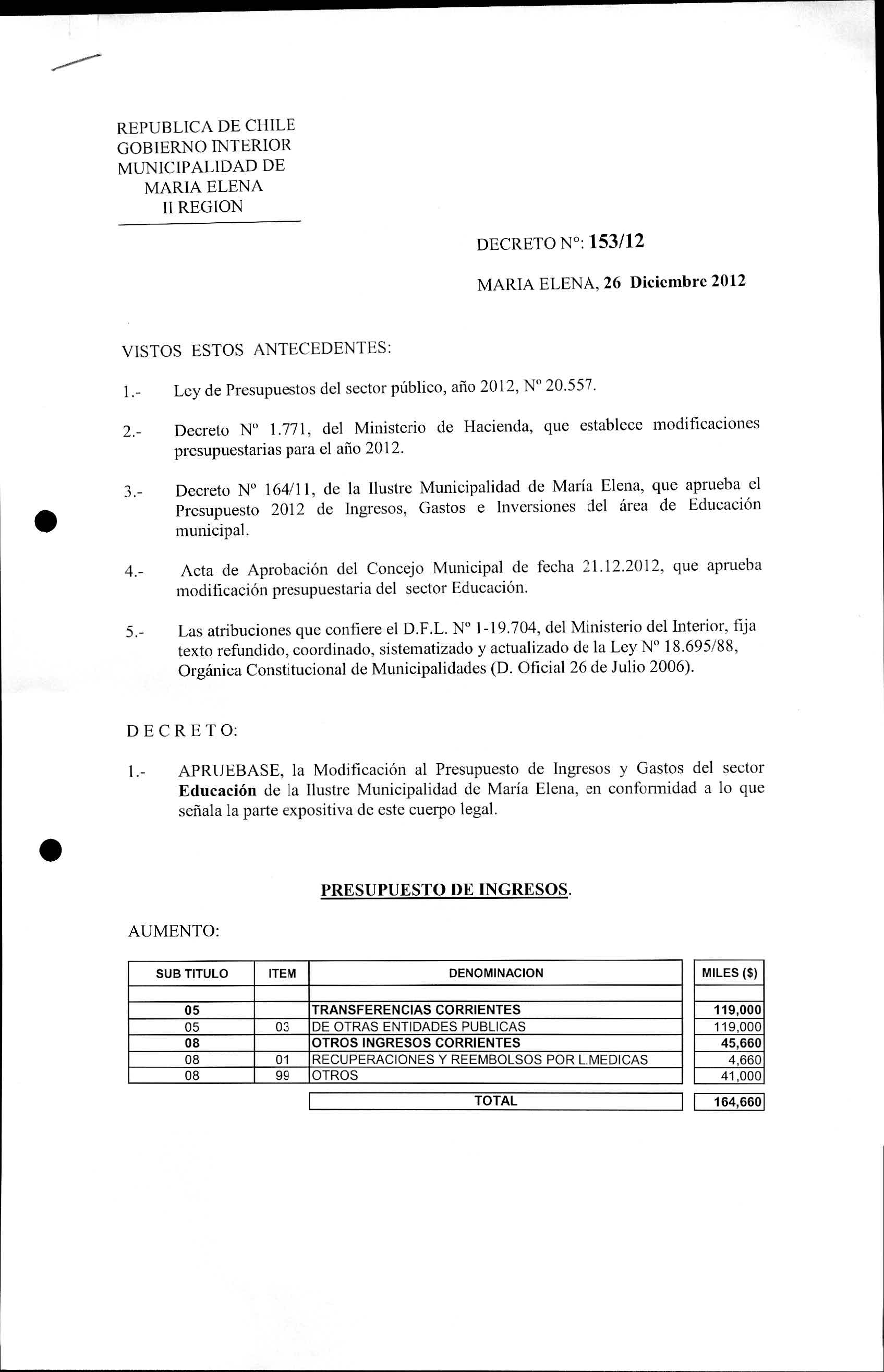 Transparencia Activa » 1.7 Actas y Resoluciones con efectos sobre Terceros» Decretos» 2012» Decretos Alcaldicios» DECRETOS REGISTRADOS AÑO 2012» 2013-07-03 DR 153-2012