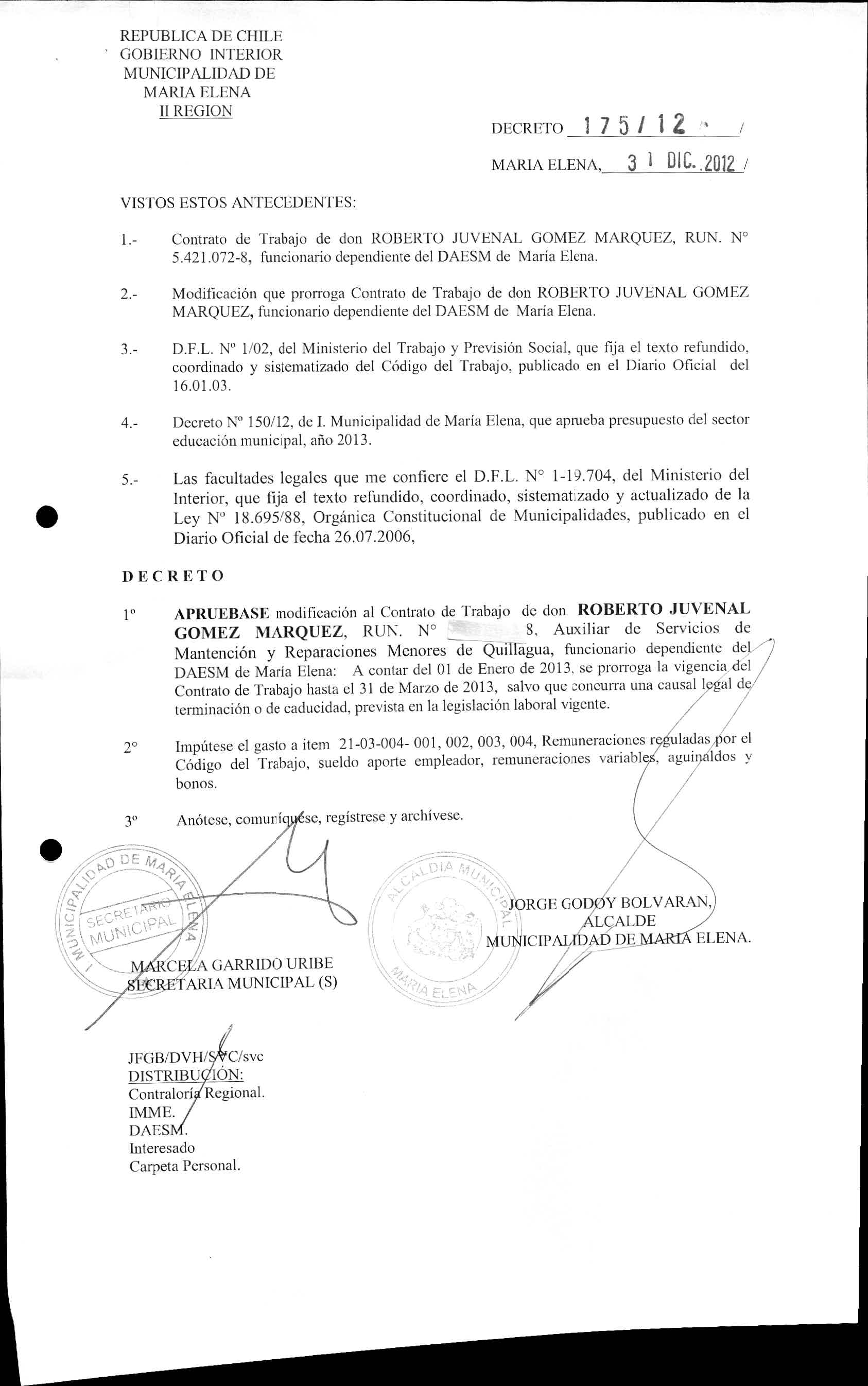 DECRETOS REGISTRADOS AÑO 2012
