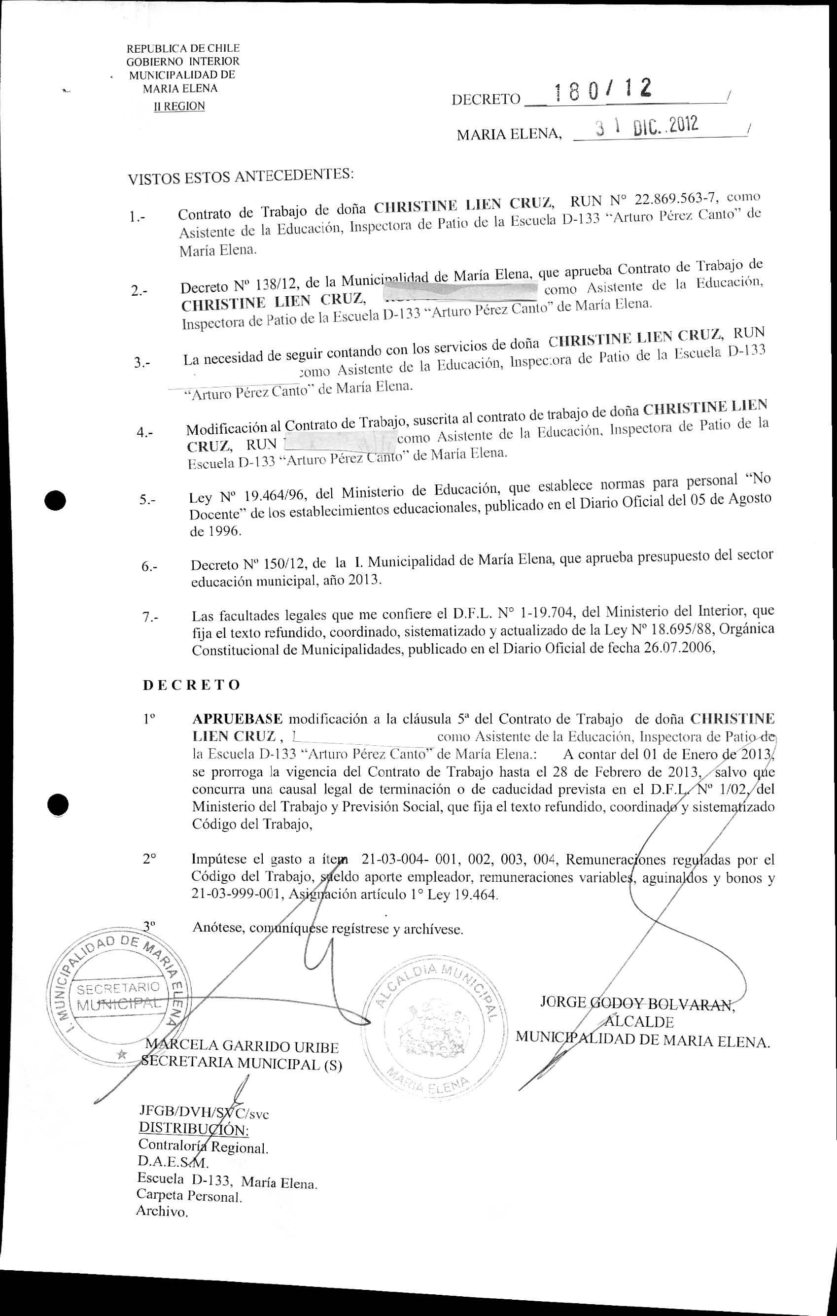 DECRETOS REGISTRADOS AÑO 2012