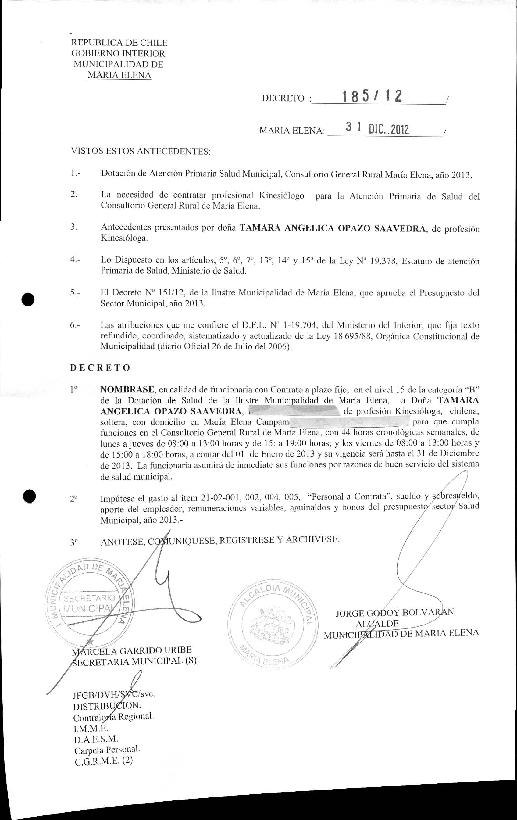 DECRETOS REGISTRADOS AÑO 2012