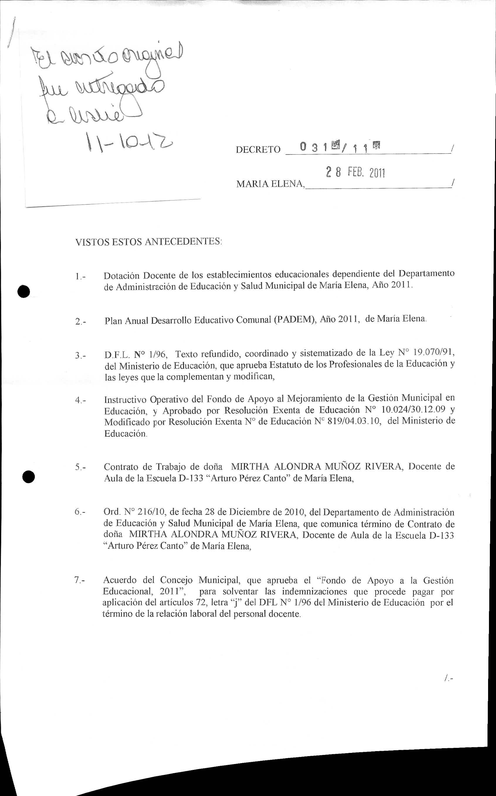 DECRETOS REGISTRADO AÑO 2011