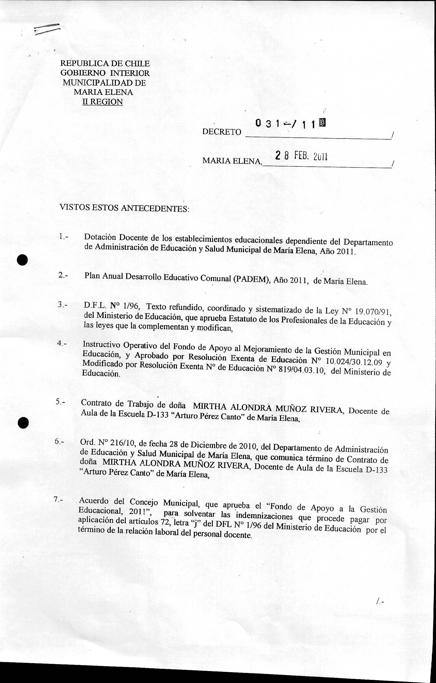 Transparencia Activa » 1.7 Actas y Resoluciones con efectos sobre Terceros» Decretos» 2011» Decretos Alcaldicios» DECRETOS REGISTRADO AÑO 2011» 2013-07-03 DR 31-2011