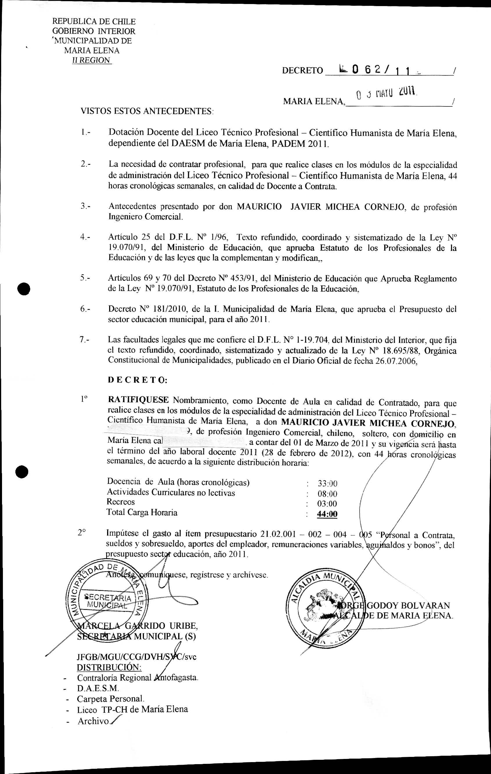DECRETOS REGISTRADO AÑO 2011
