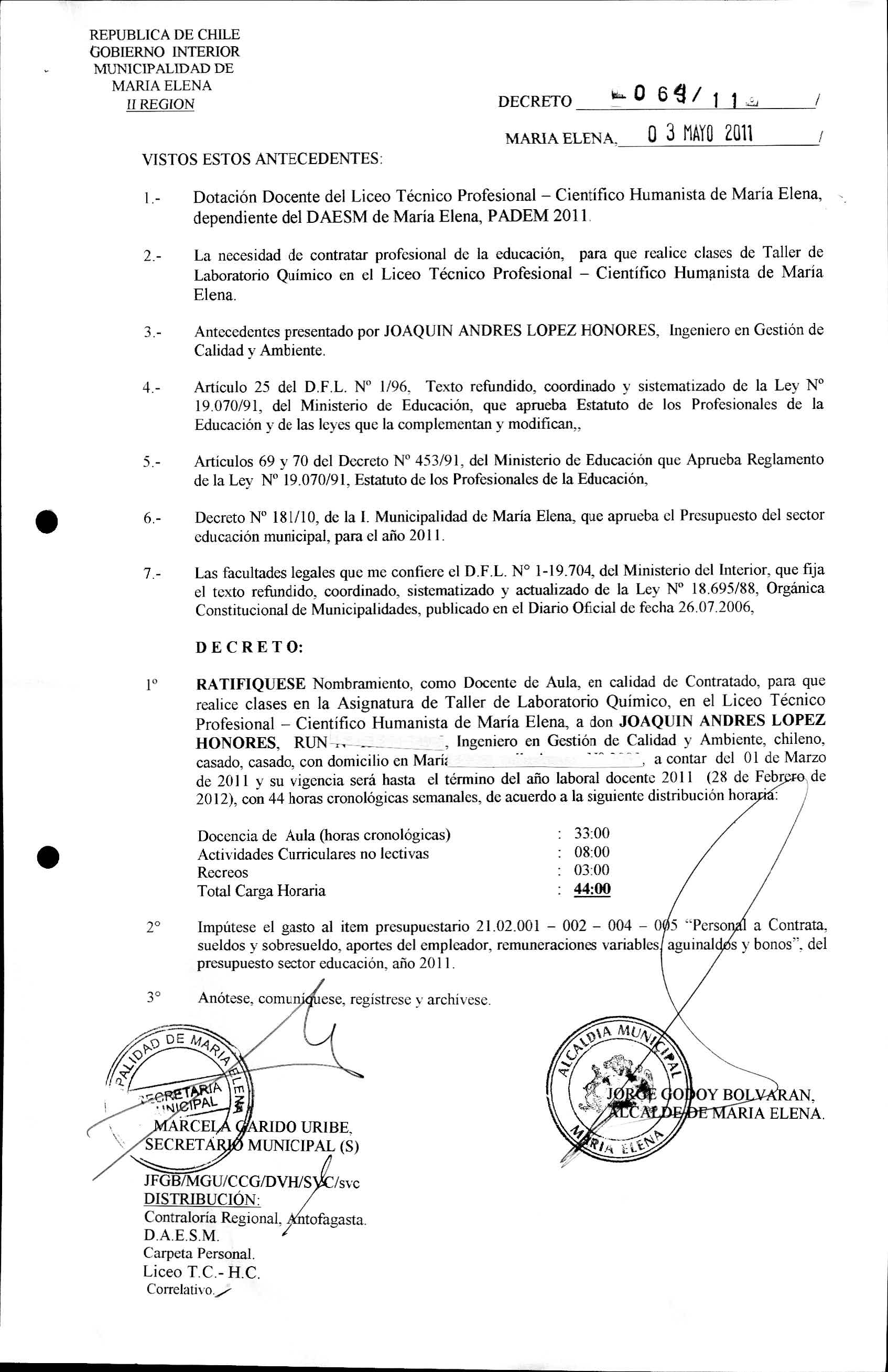 DECRETOS REGISTRADO AÑO 2011