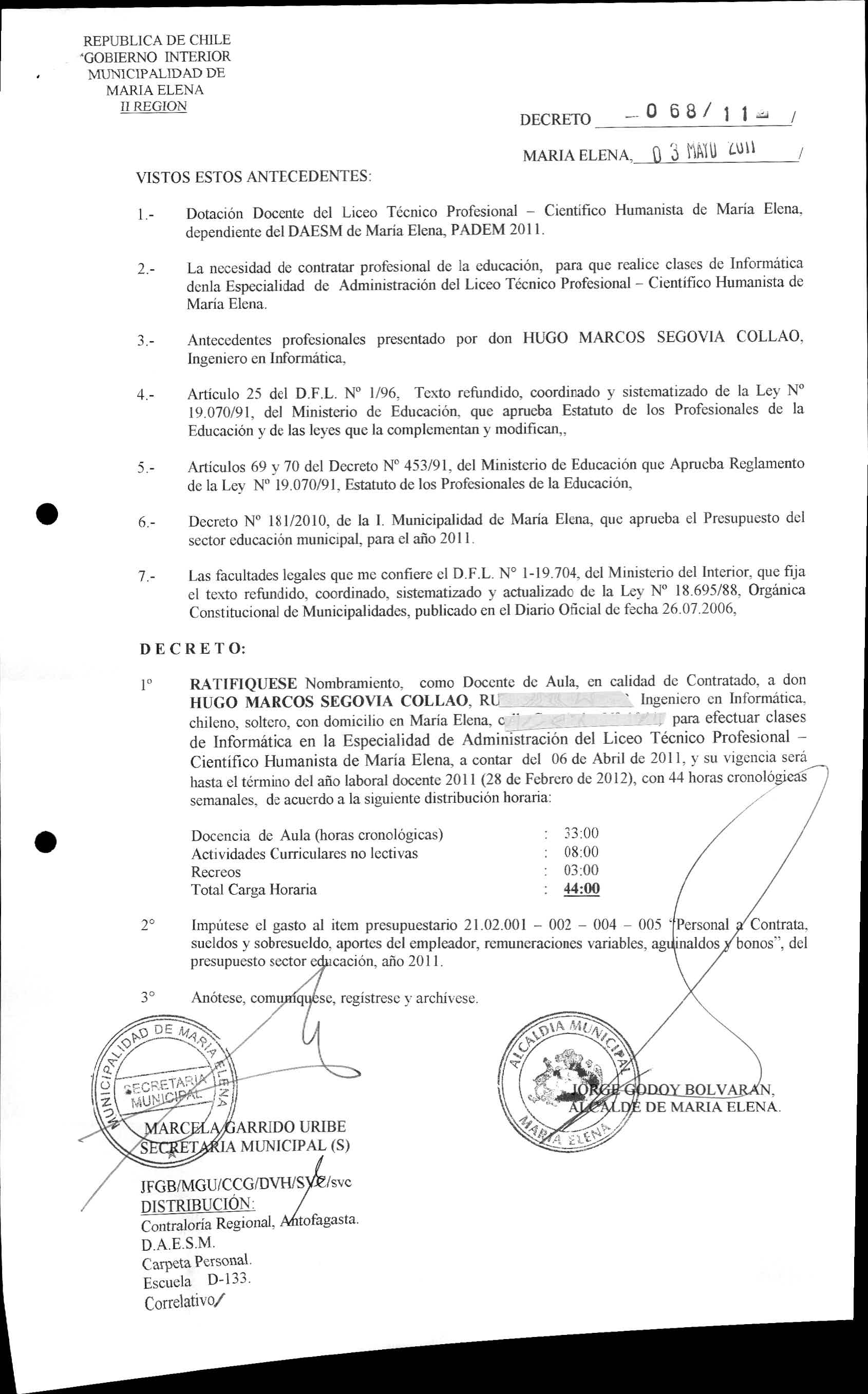 DECRETOS REGISTRADO AÑO 2011