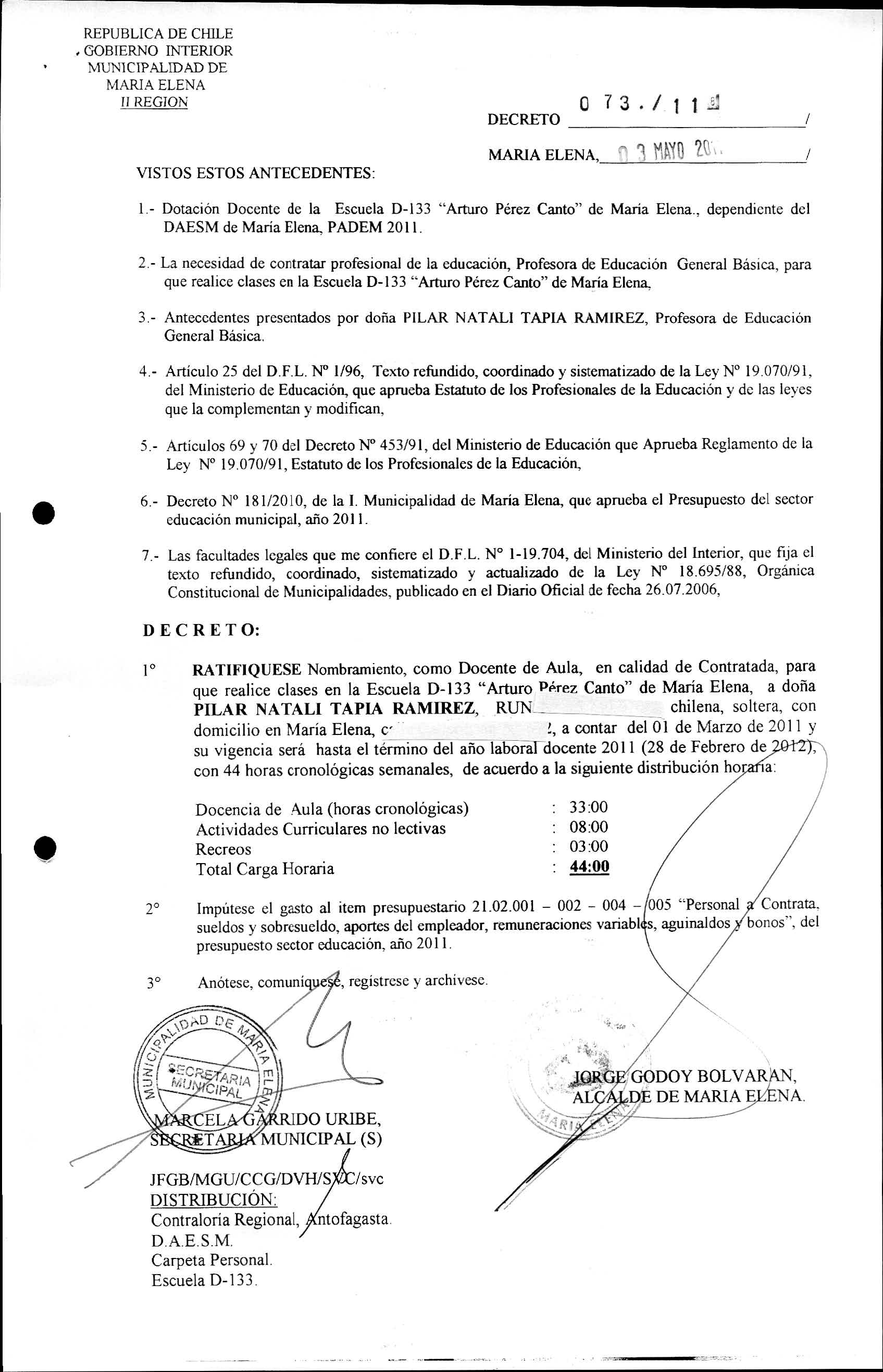 DECRETOS REGISTRADO AÑO 2011