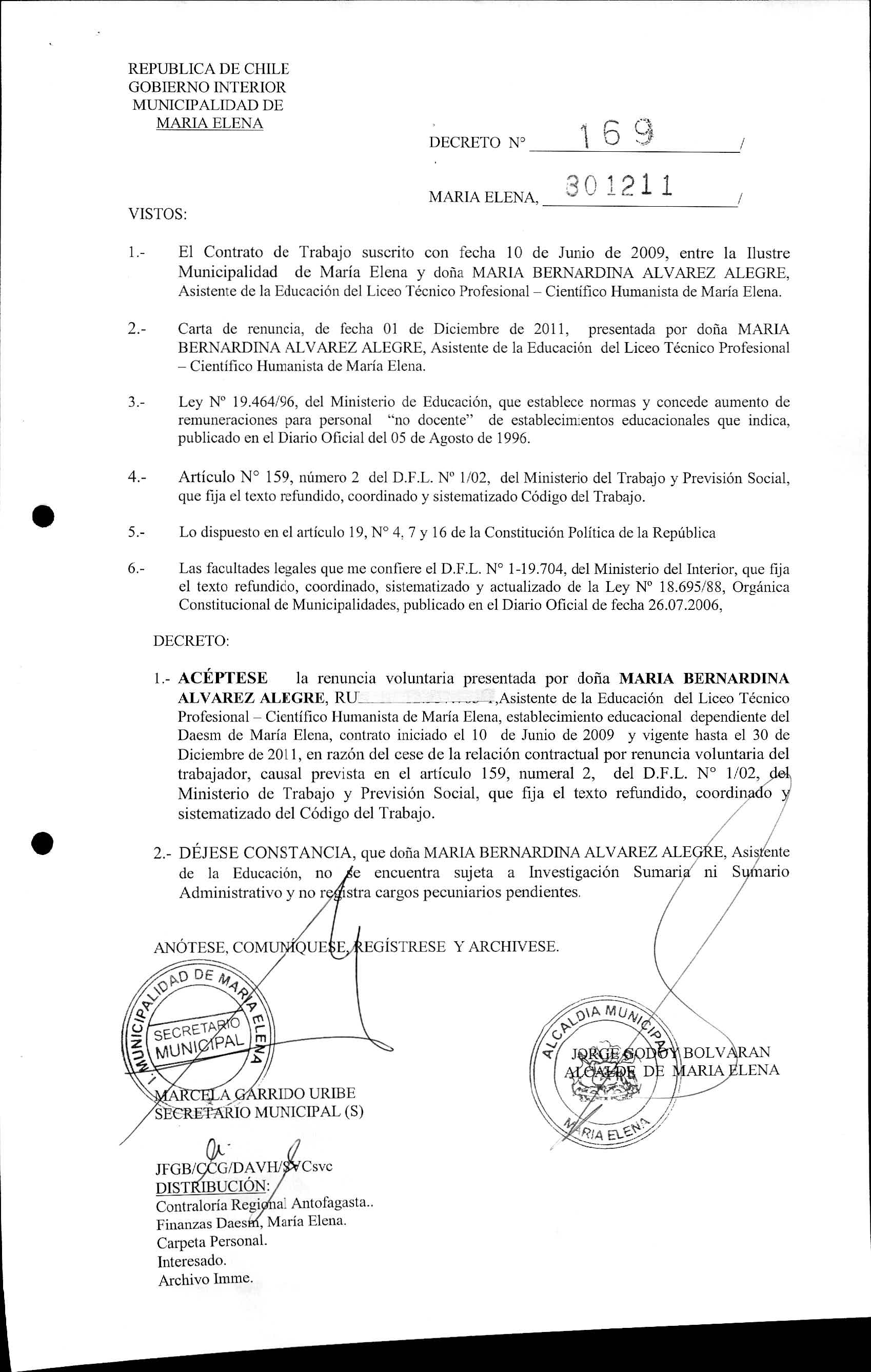 DECRETOS REGISTRADO AÑO 2011