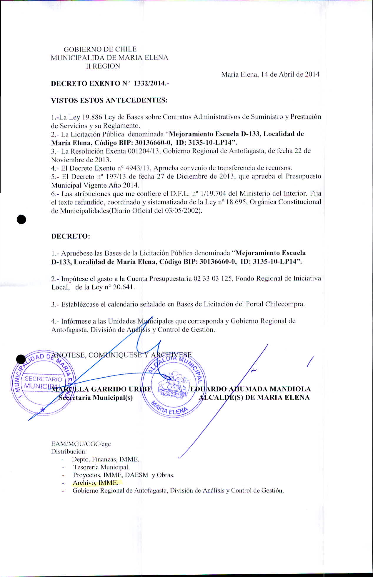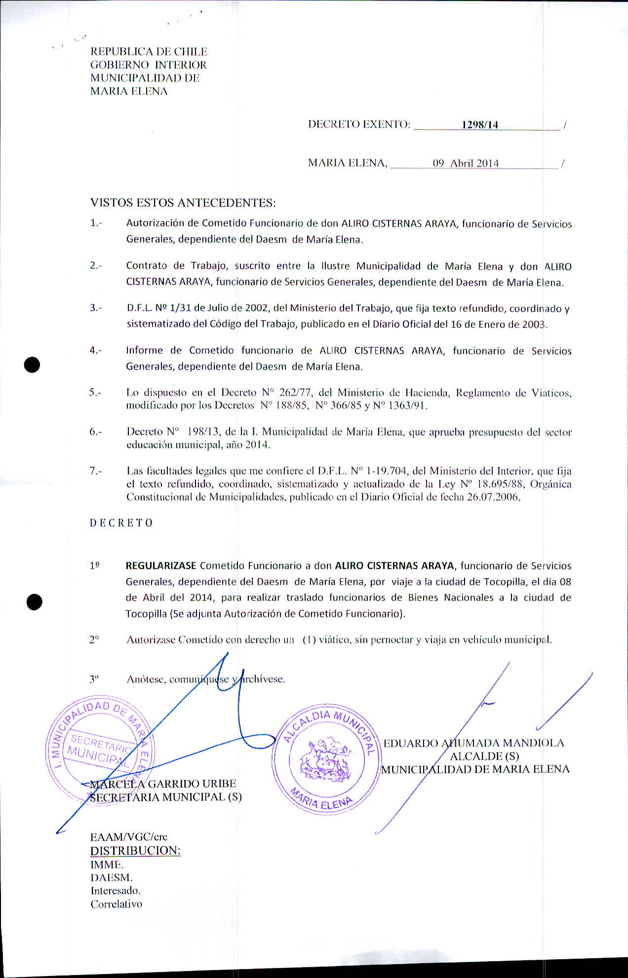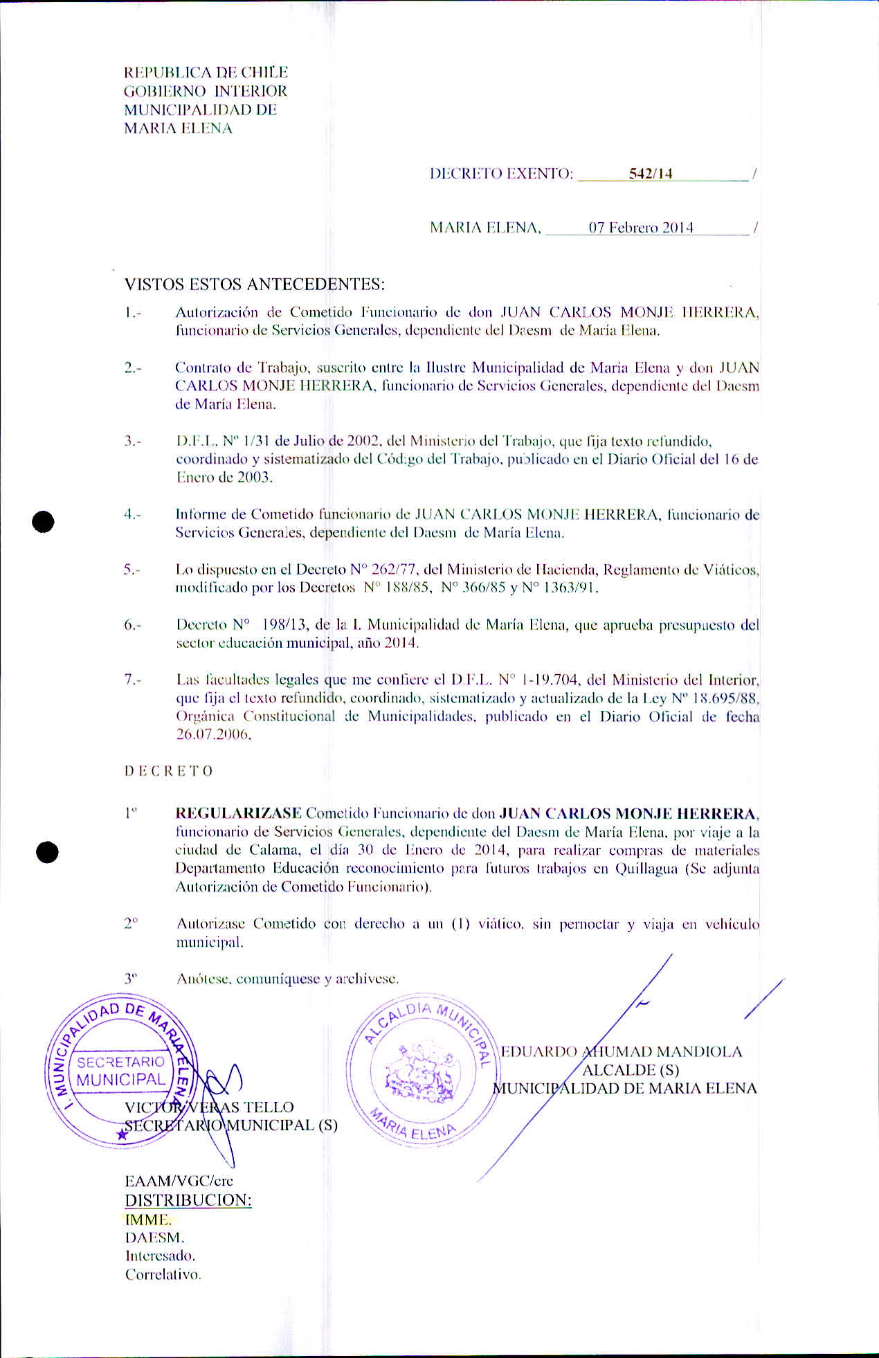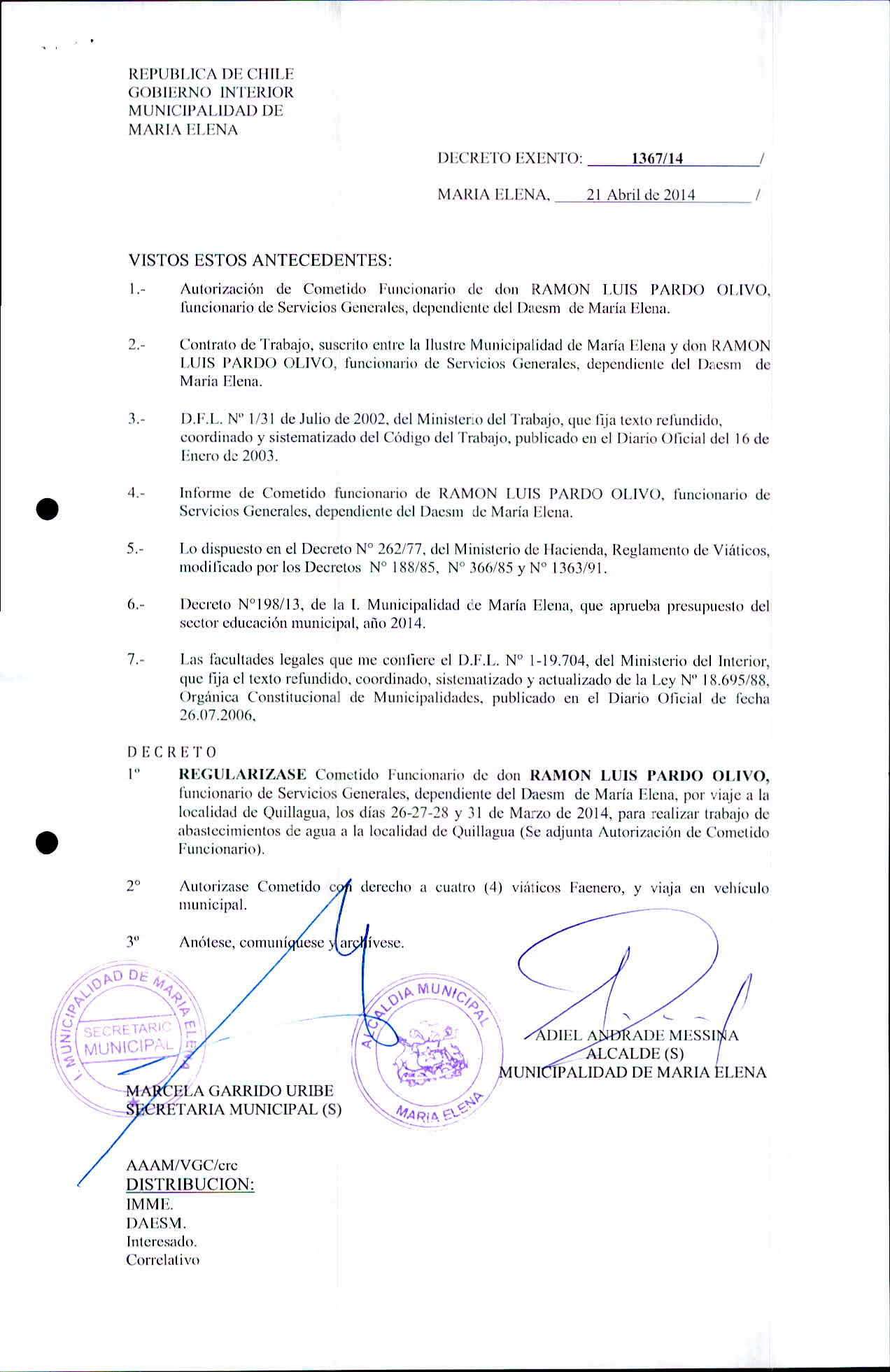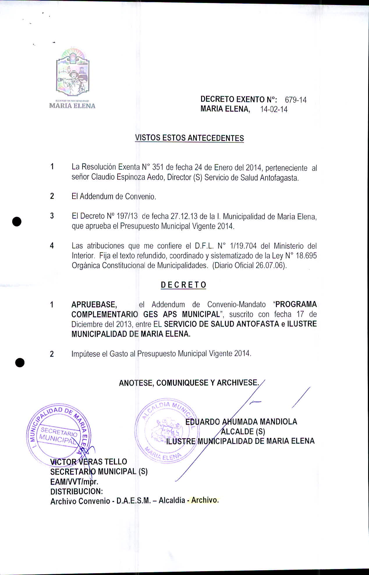 Transparencia Activa » 1.7 Actas y Resoluciones con efectos sobre Terceros» Decretos» 2014» Decretos Exentos
