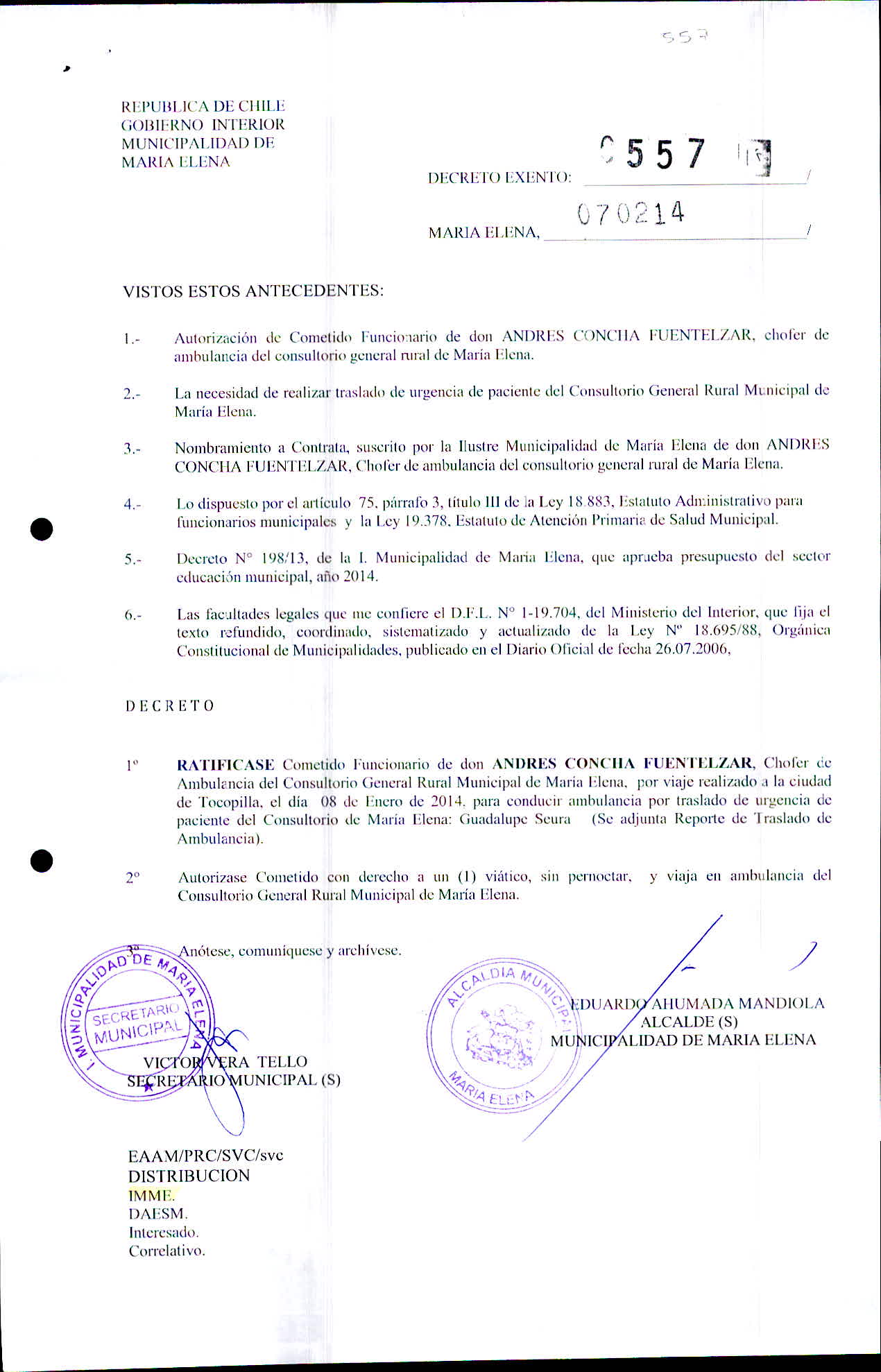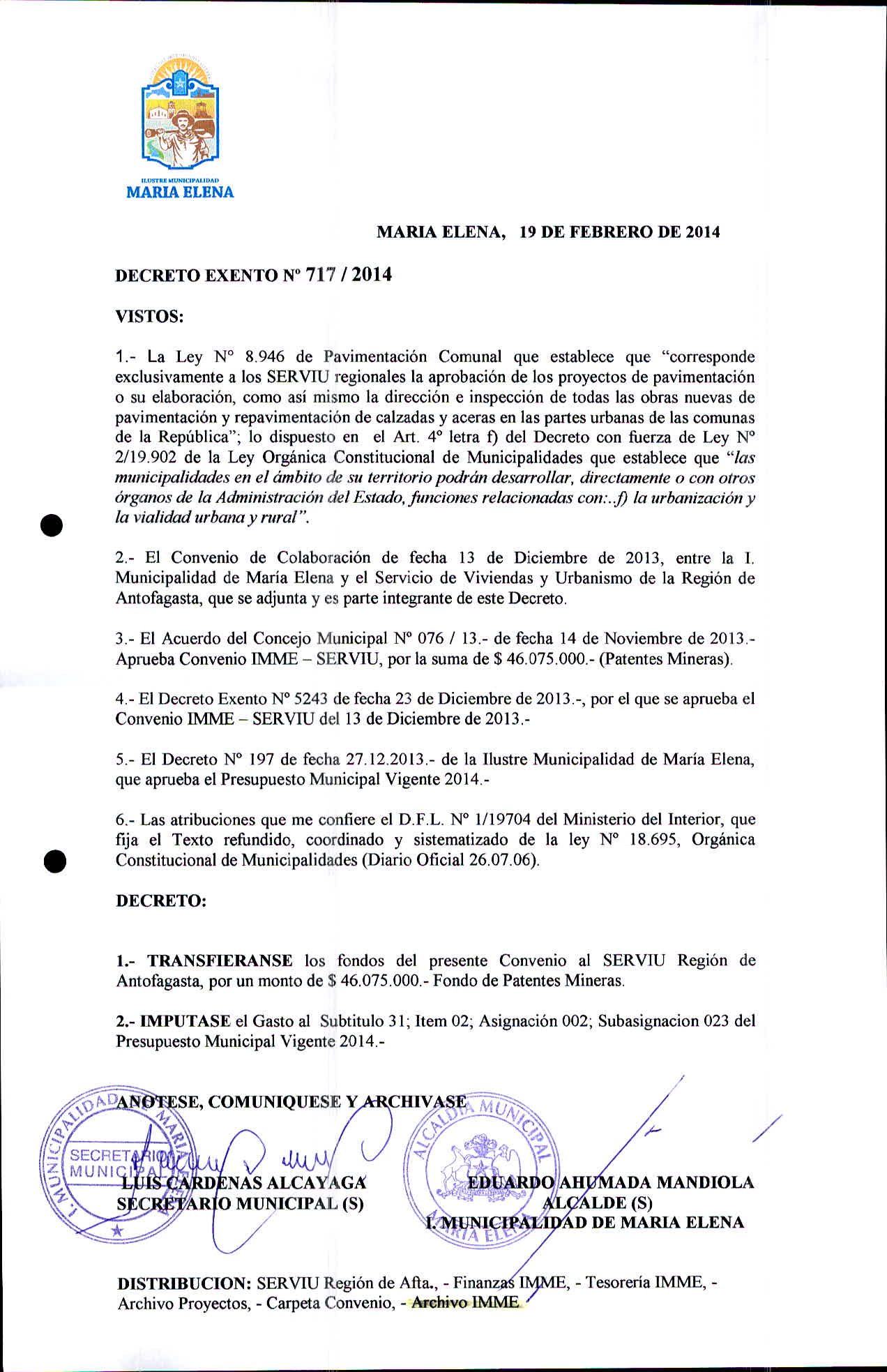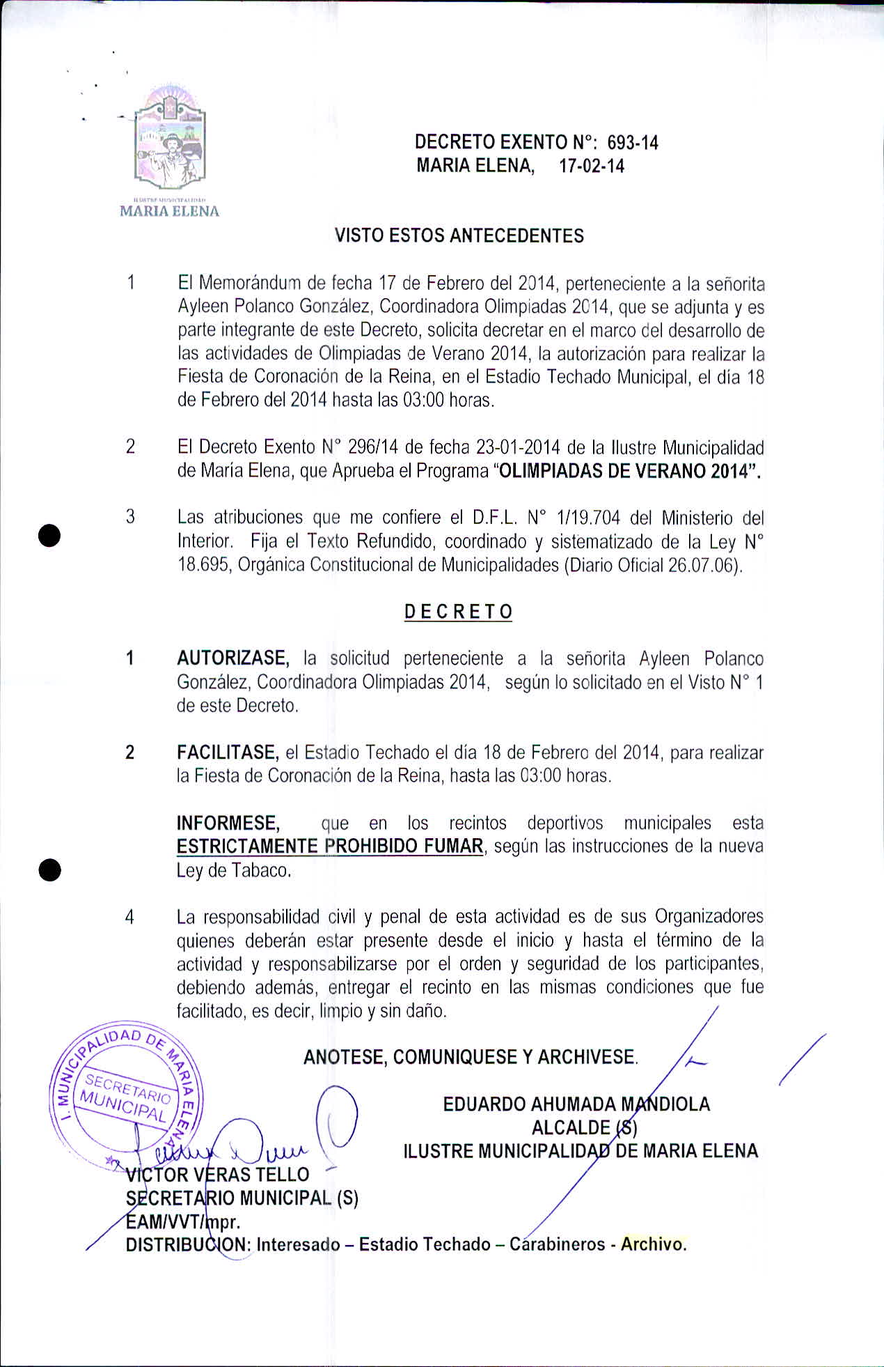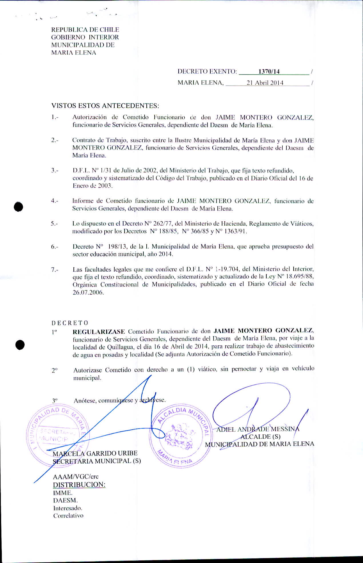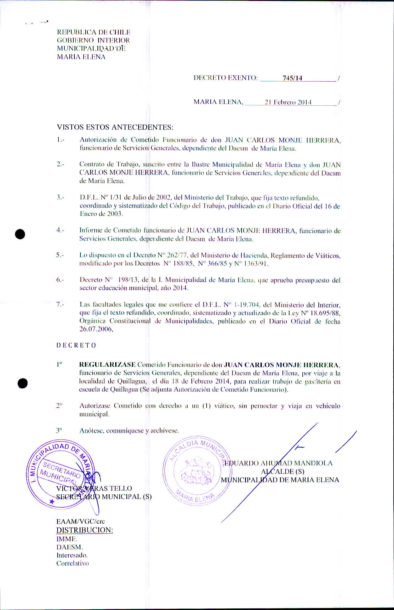 Transparencia Activa » 1.7 Actas y Resoluciones con efectos sobre Terceros» Decretos» 2014» Decretos Exentos