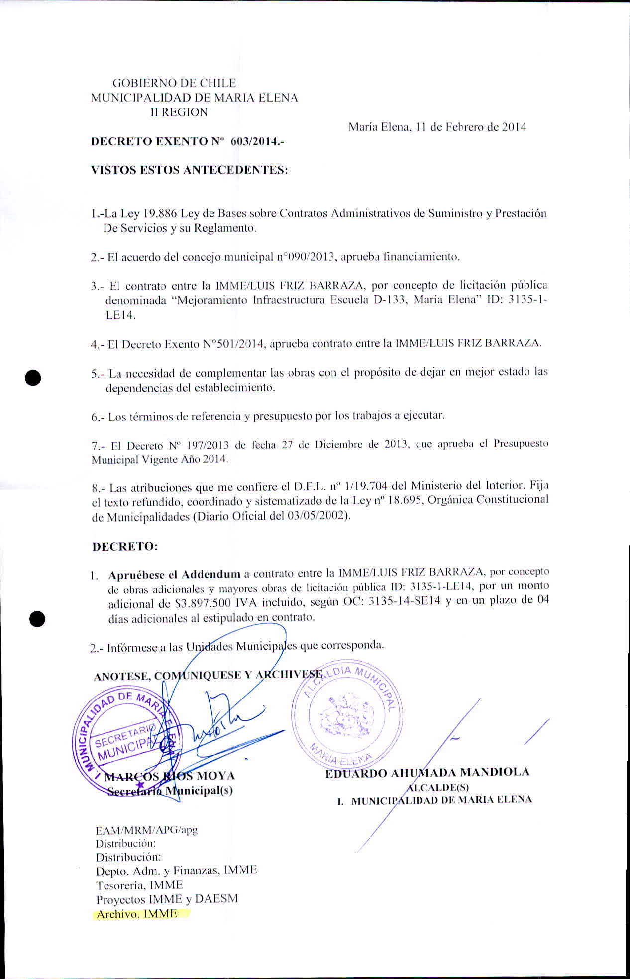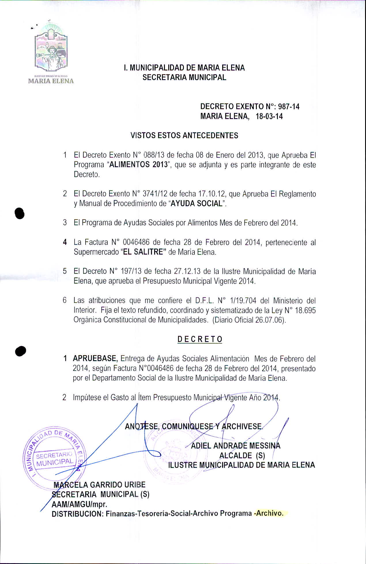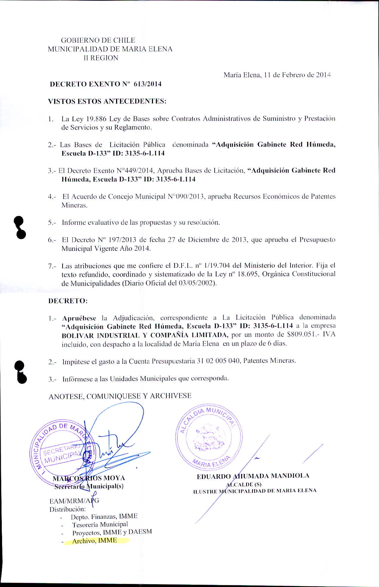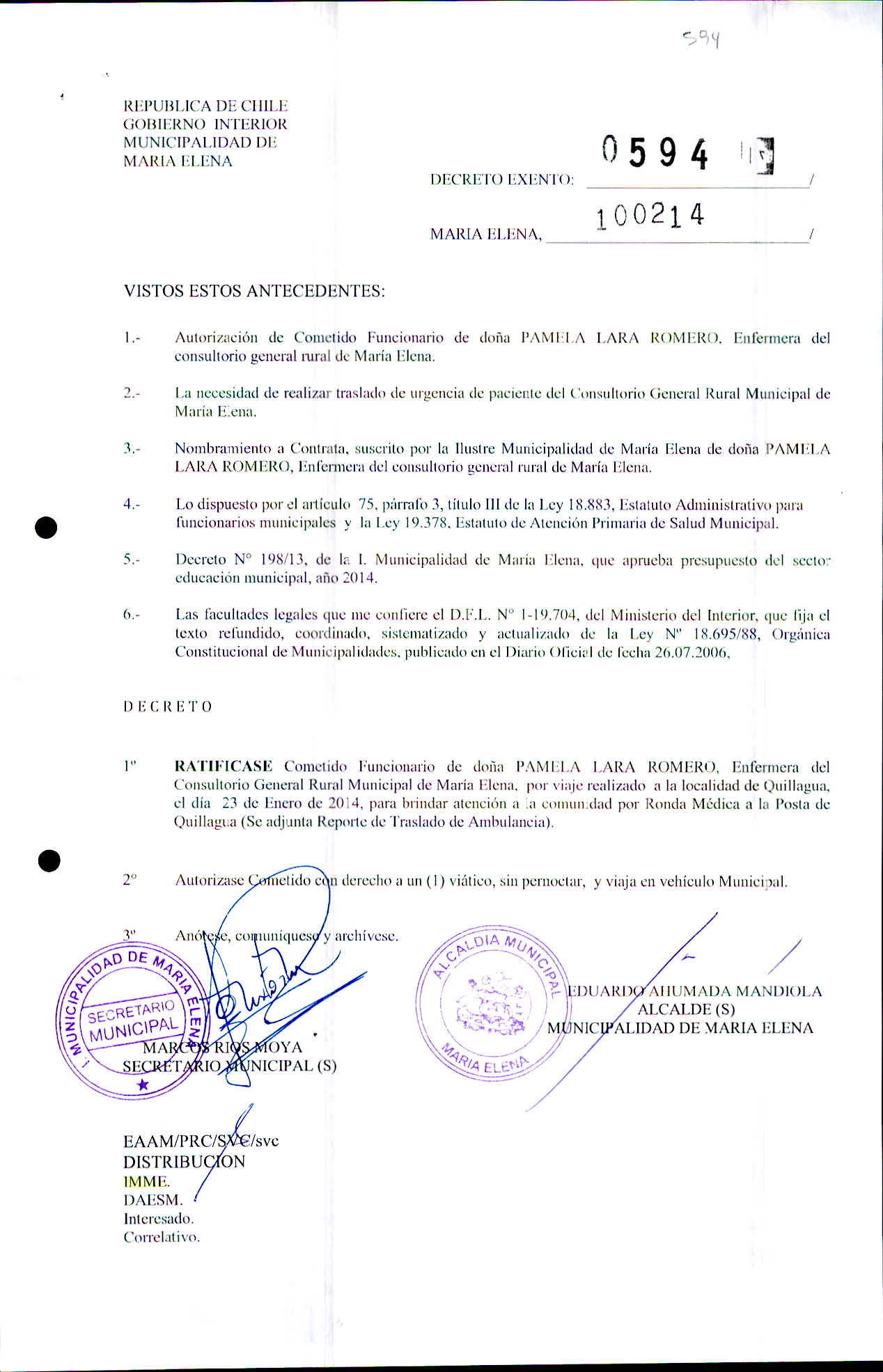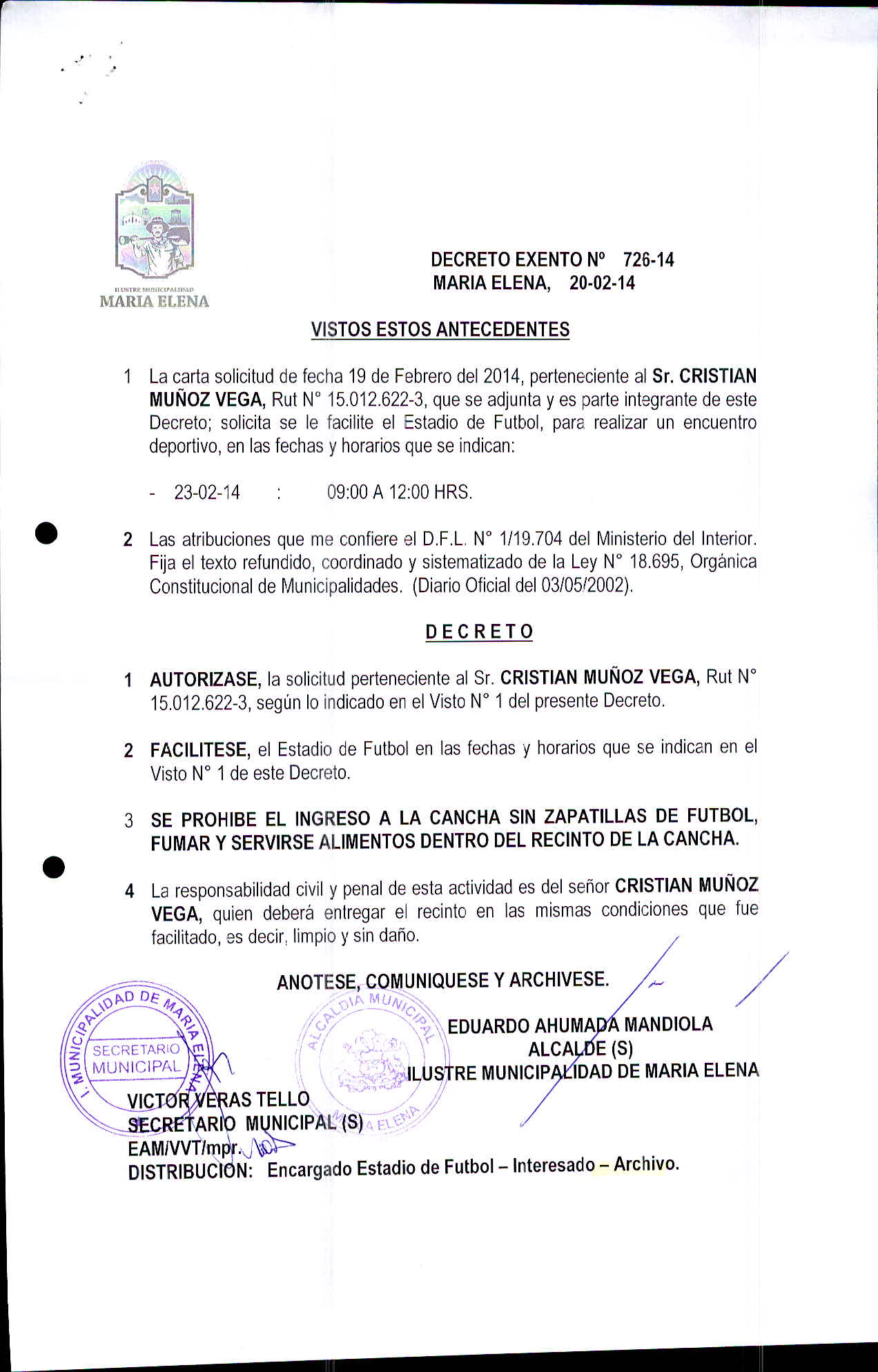 Transparencia Activa » 1.7 Actas y Resoluciones con efectos sobre Terceros» Decretos» 2014» Decretos Exentos
