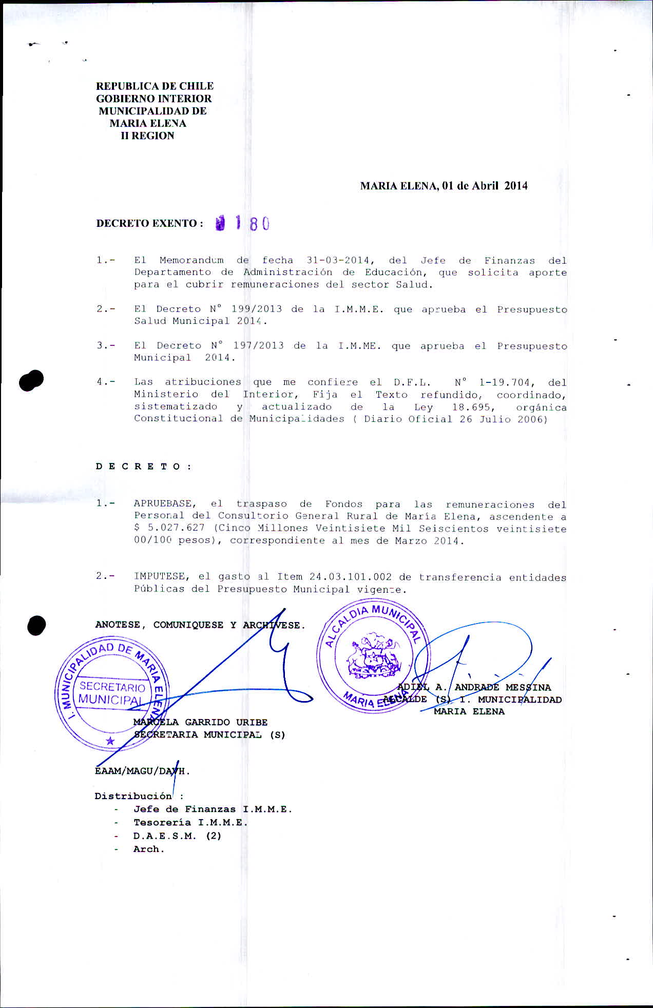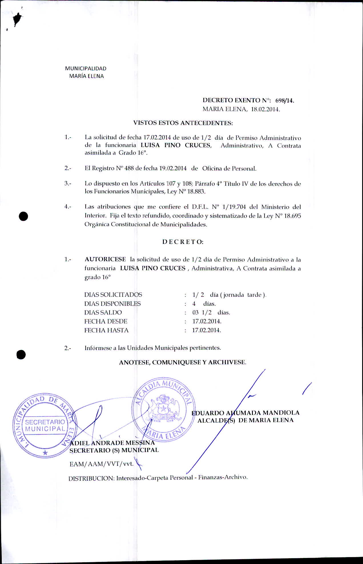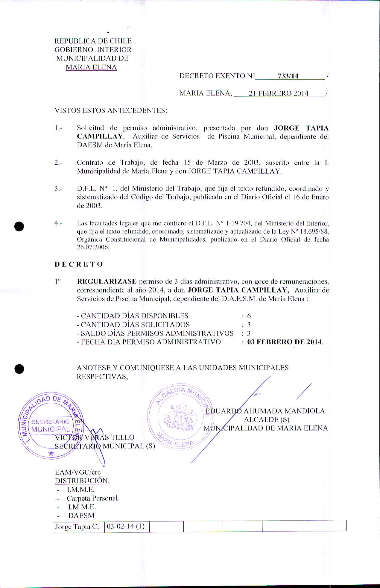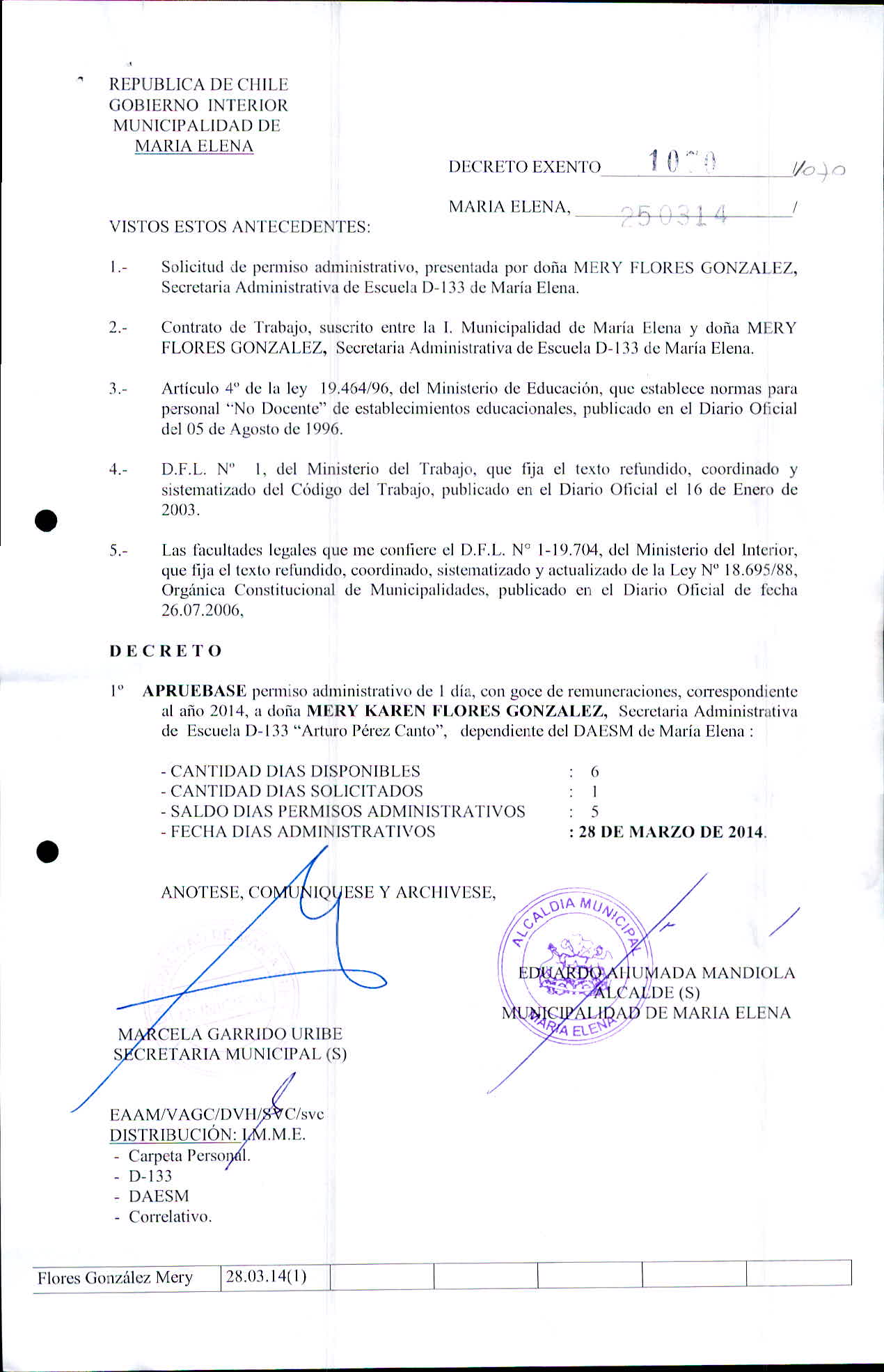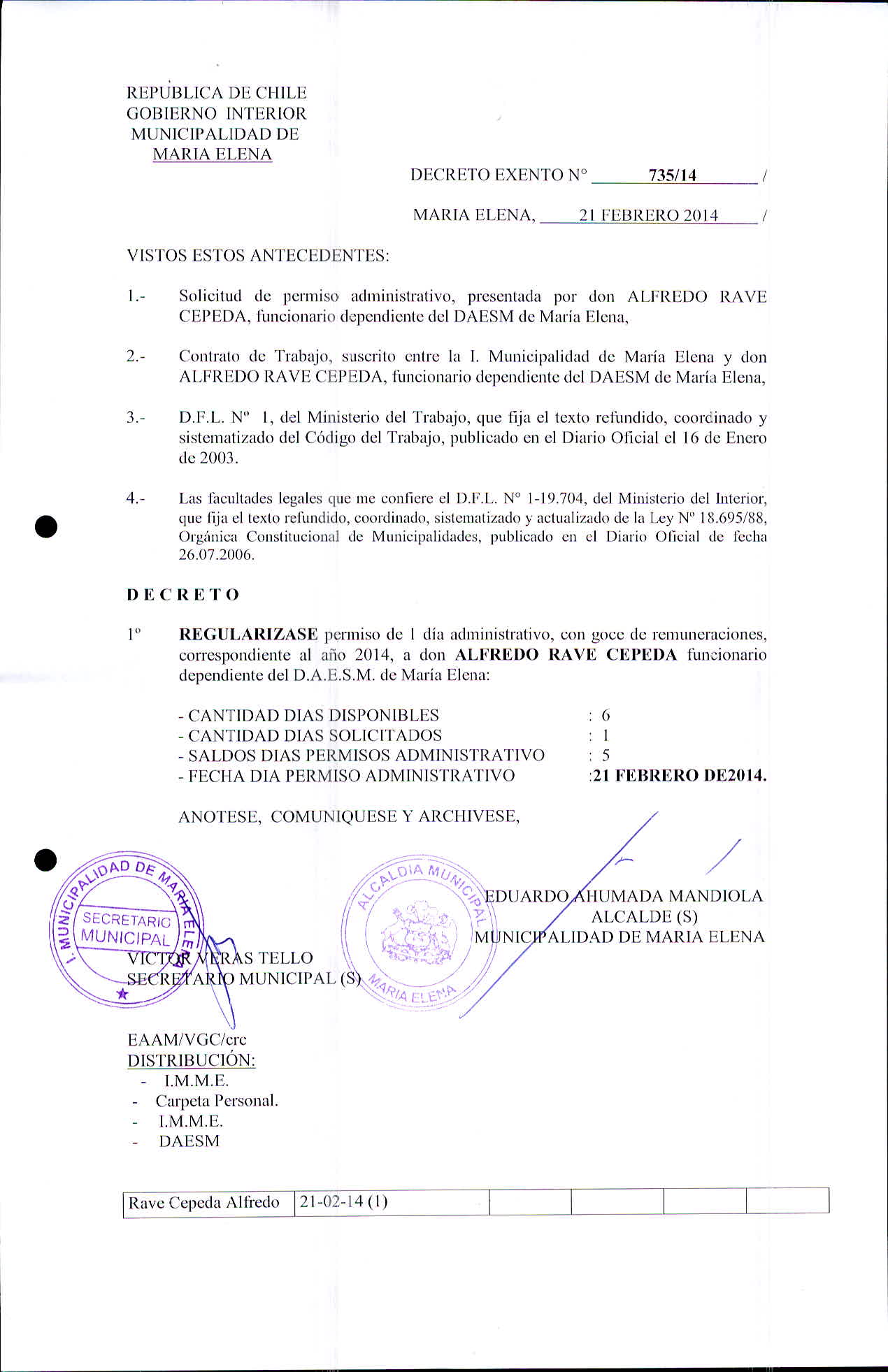 Transparencia Activa » 1.7 Actas y Resoluciones con efectos sobre Terceros» Decretos» 2014» Decretos Exentos